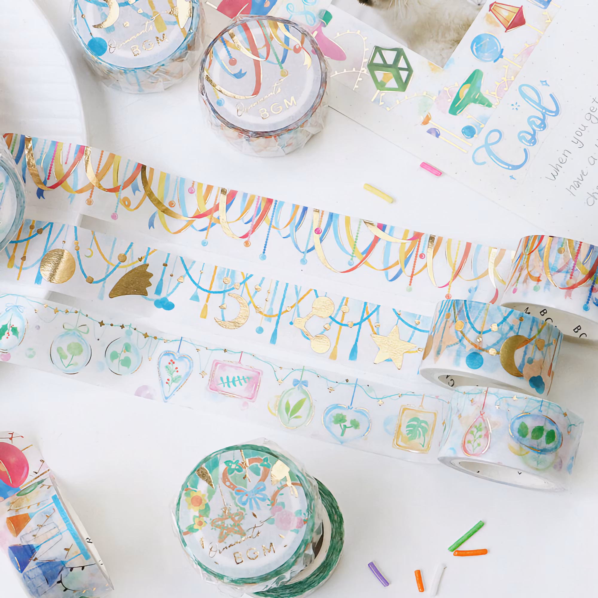 Washitejp med ornamentmotiv från japanska BGM. Tejpen har ett guldfolieutförande, vilket gör att motivet glänser extra mycket.