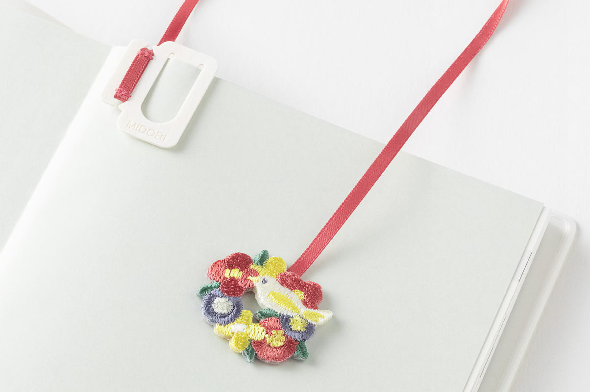 With this Embroidery Clip Bookmark from Midori, you can easily add a bookmark band to any book. Just put the clip on the first or last page and then hang the band at any place in your notebook or diary.