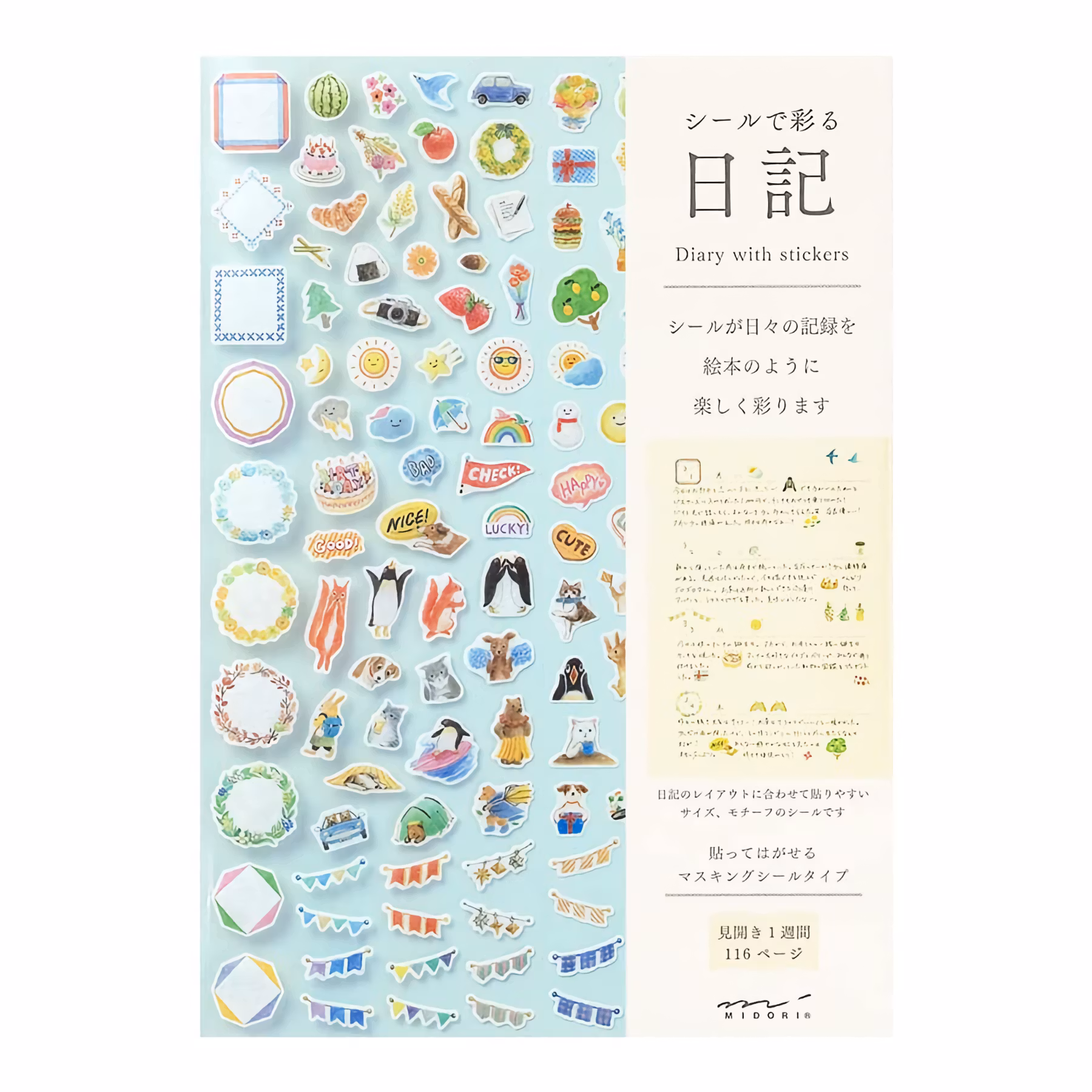 Midori's diary with stickers is a simple and playful way to keep a diary. Simply use the included stickers to add a personal and festive touch to your diary entries.