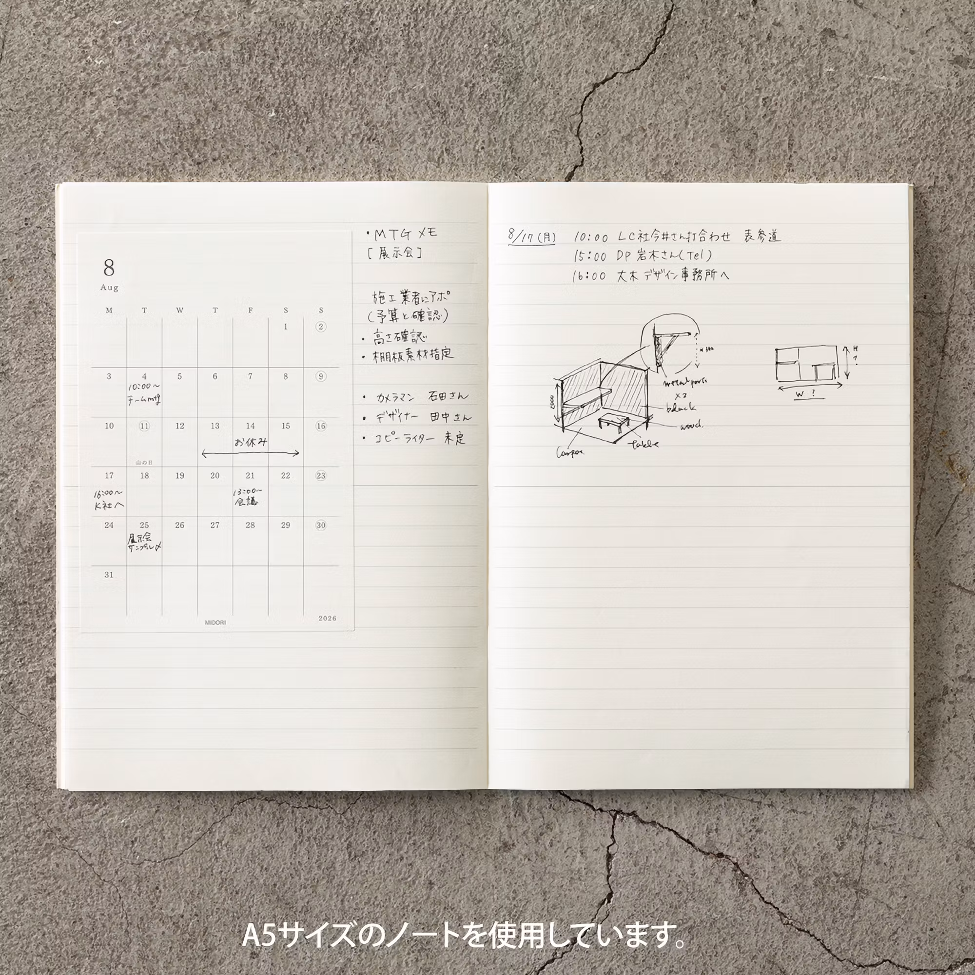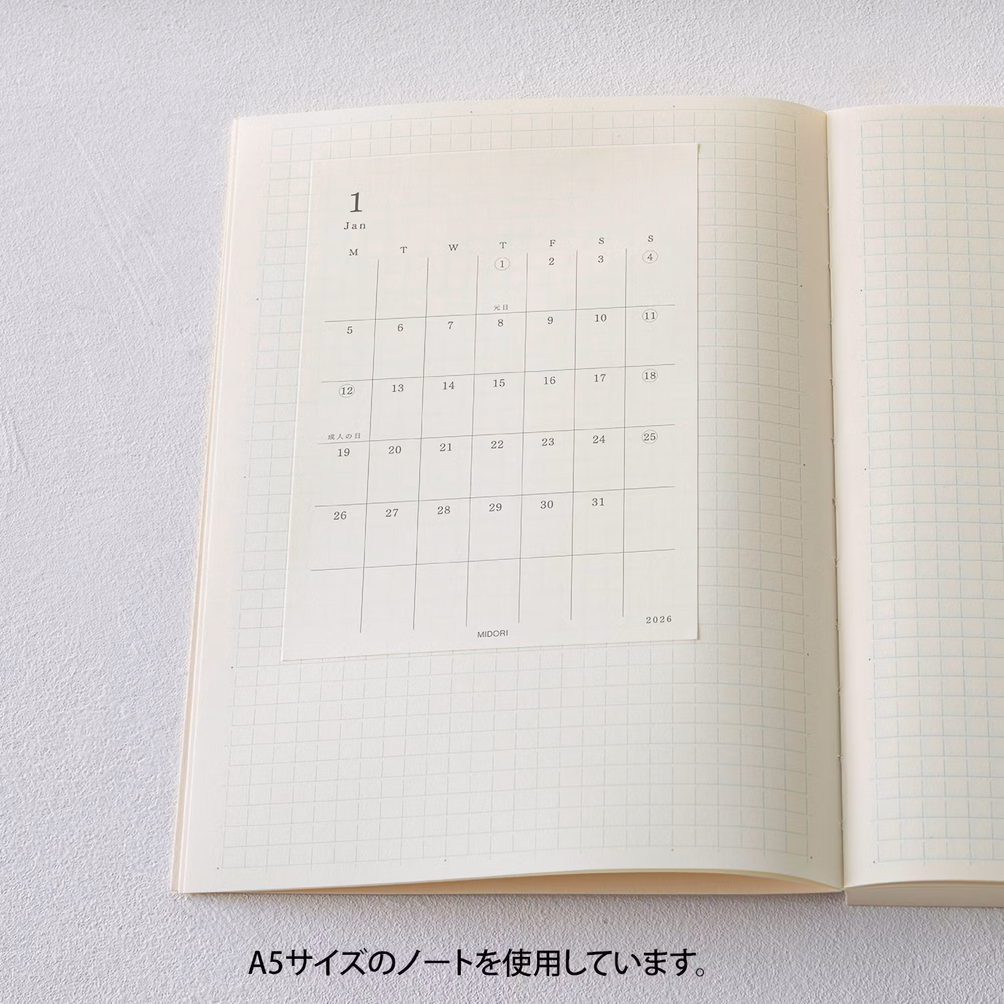 These calendar stickers transform any notebook into a diary. Due to paper quality and color, the stickers are especially well suited for Midori’s own diaries but of course also work with other notebooks.