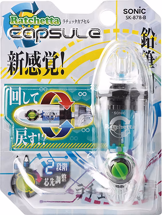 With this ingenious pencil sharpener from Japanese Sonic, you no longer need to sharpen-release-grip-take-new-grip-sharpen-release… yeah, you get it. Namely, it has a locking mechanism similar to that found on a ratchetta screwdriver. That means it's enough just to spin the pen back and forth.