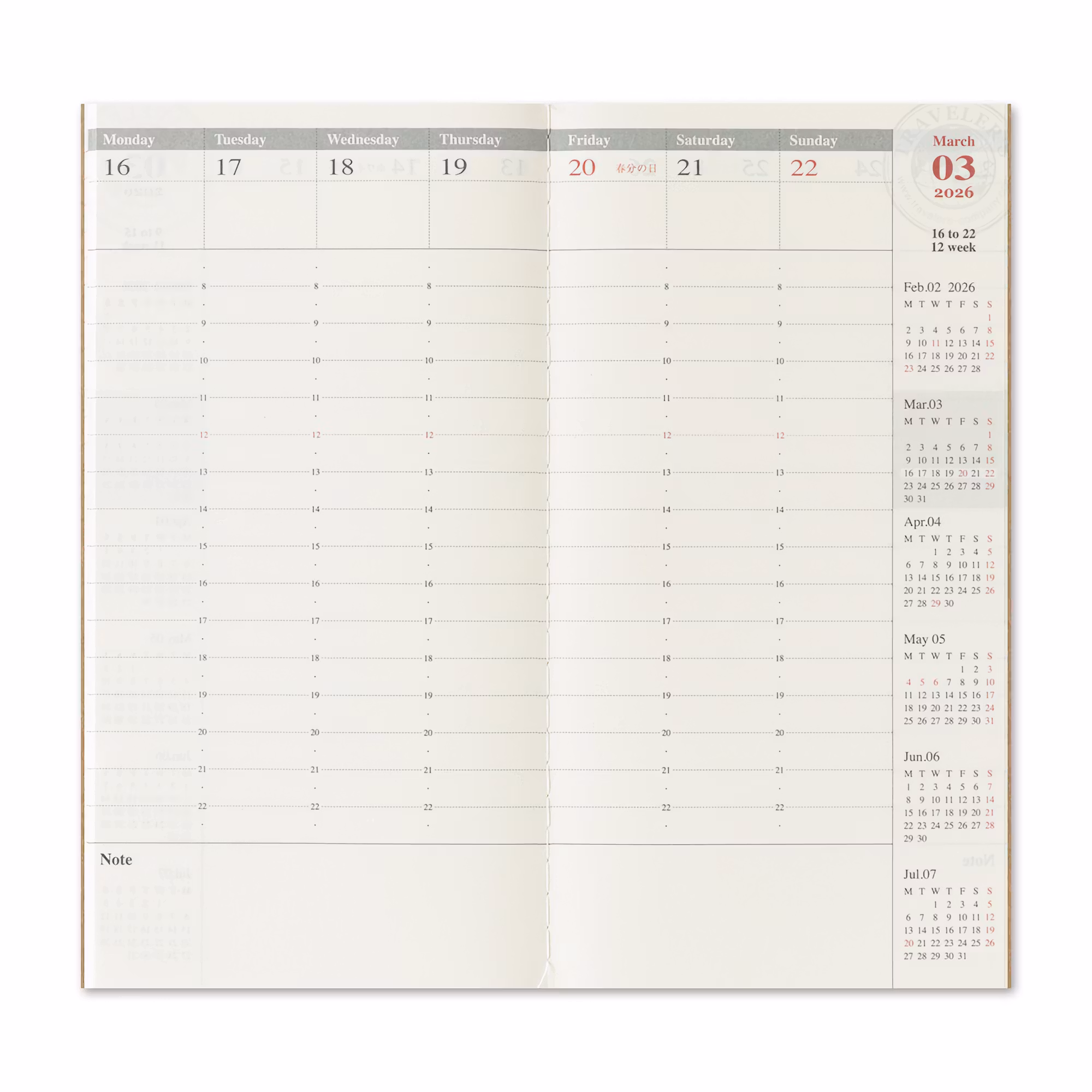 This diary has a vertical weekly view, perfect for getting an overview of all the hours of the day. This diary is divided into two books, both containing 6 months each. The diary also comes with a guide and stickers.