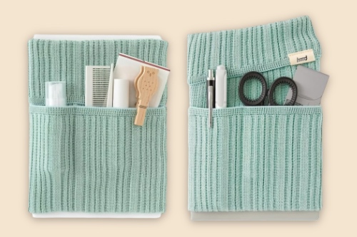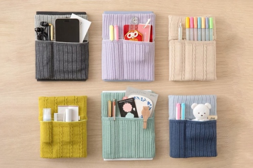 Midori’s Knitted Book Band with Pockets is a storage pocket designed to be worn around a notebook, much like a haramaki*.