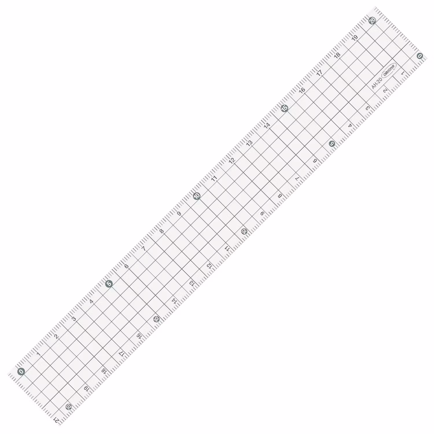 Kyoeis Orions Grid Ruler är en mycket praktisk genomskinlig linjal. Tack vare det rutade utförandet (5 x 5 mm) är det lätt att se om dina linjer är helt parallella. Ena sidan av linjalen mäter upp till 20 cm, medan den andra mäter upp till 21, eftersom markeringarna på den sidan börjar direkt från kanten.