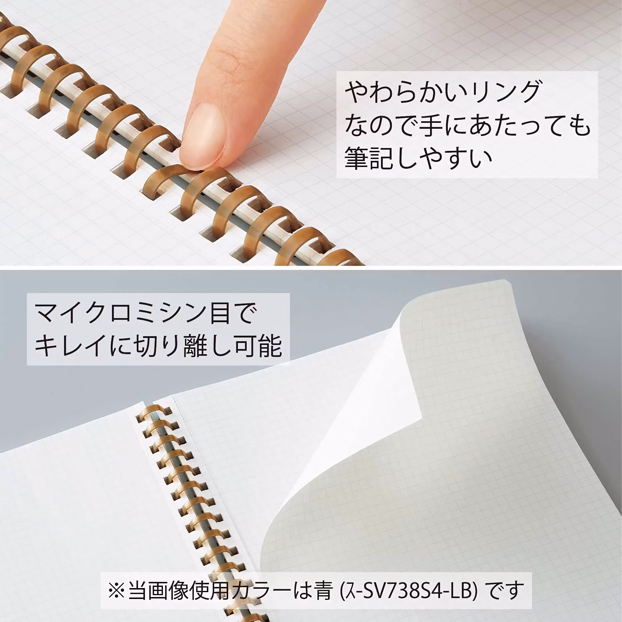 Ringbundna anteckningsböcker kan vara oerhört praktiska, men vissa ogillar ändå de hårda ringarna som gräver sig in i handleden eller repar dina prylar i väskan. Det är här Kokuyos Sooofa Soft Ring Notebook kommer in i bilden, som med sina mjuka ringar ser till att skrivupplevelsen blir mycket mer bekväm. Anteckningsboken har också andra finesser som förbättrar upplevelsen, som exempelvis pennskåran på omslaget och plastfickan längst bak.