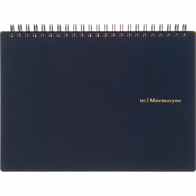 Mnemosyne är en serie anteckningsböcker från japanska Maruman. Maruman är kända för sin oerhörda papperskvalitet, och Mnemosyne är inget undantag. Mnemosyne finns i en rad olika storlekar. Just den här utgåvan är i liggande format, vilket exempelvis lämpar sig alldeles utmärkt att ha liggande framför tangentbordet. Eftersom ringbindningen är på ovansidan, lämpar den sig väl även för vänsterhänta.