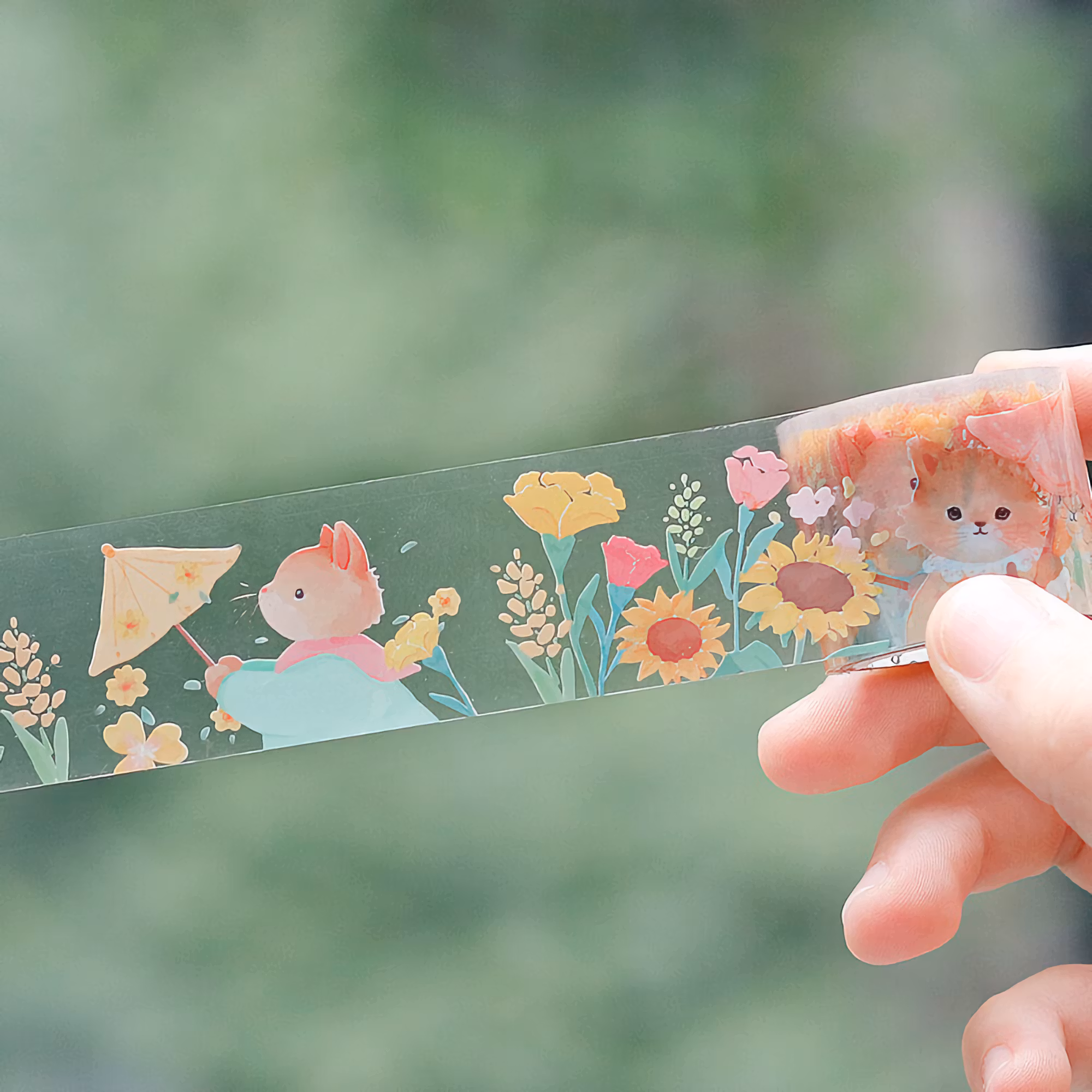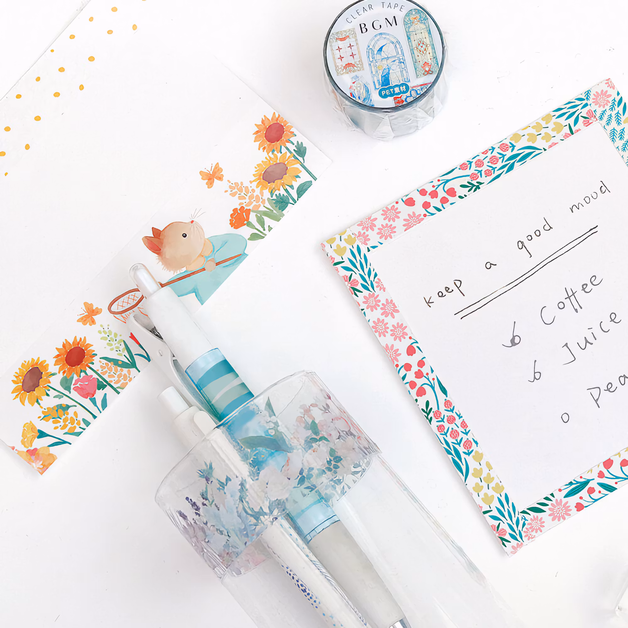 PET-tejp med härligt katt-i-solrosfälts-motiv från japanska BGM.