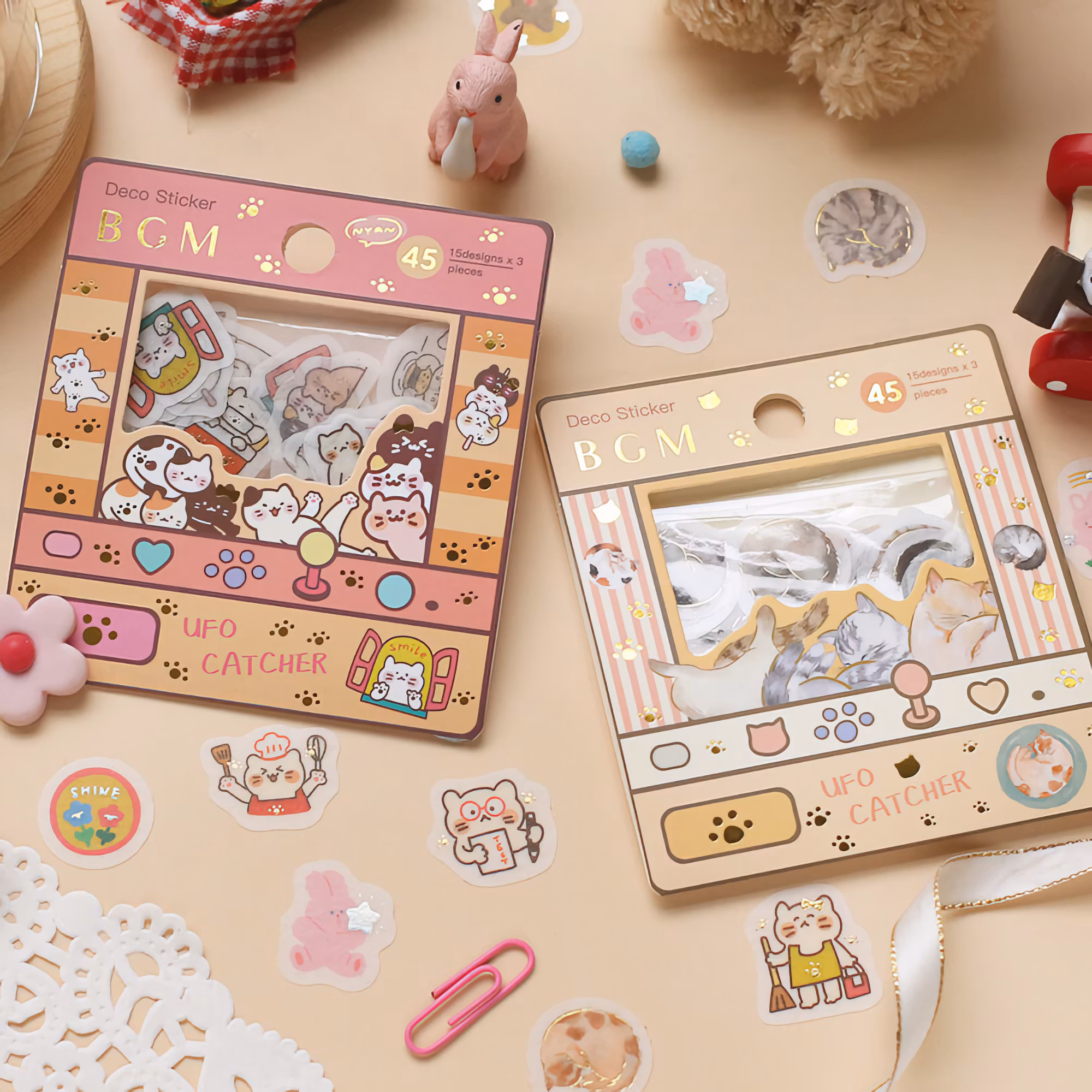 Det här paketet innehåller 45 lekfulla kattklistermärken.