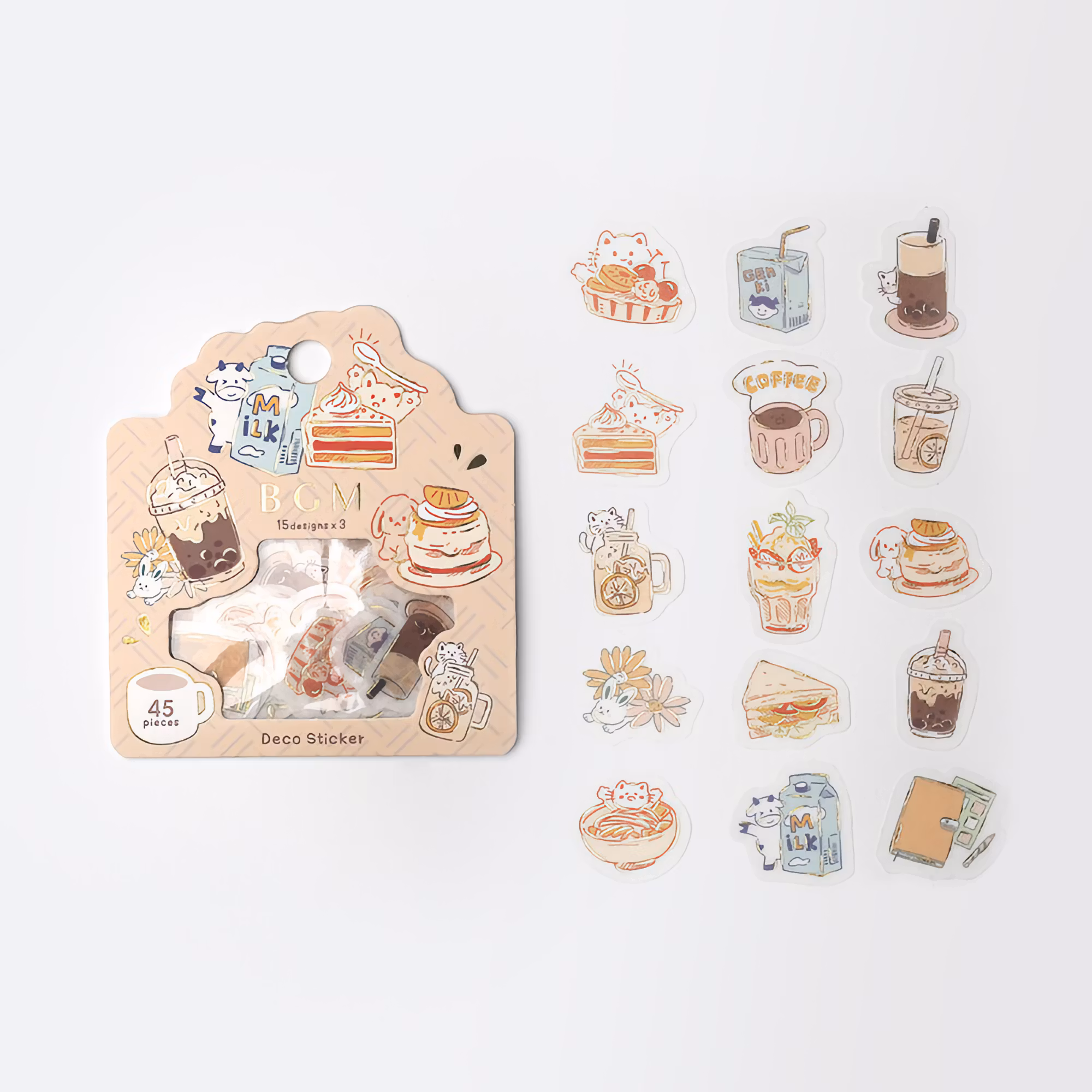 Det här paketet innehåller 45 kaféinspirerade klistermärken som mäter mellan ungefär 17 x 29 mm och 28 x 27 mm.