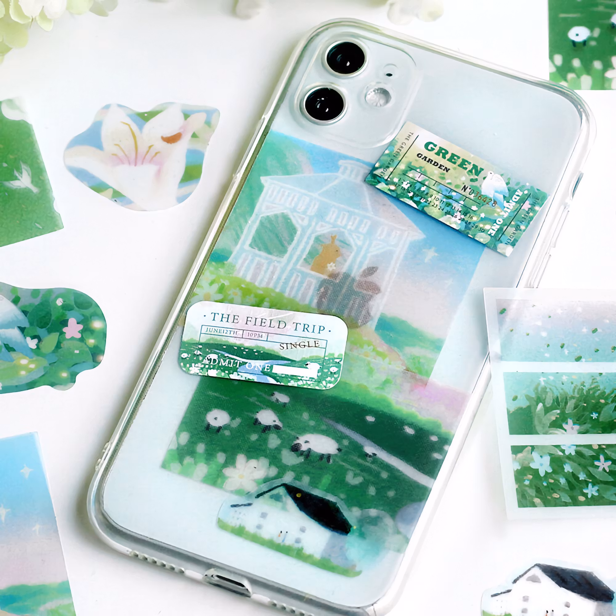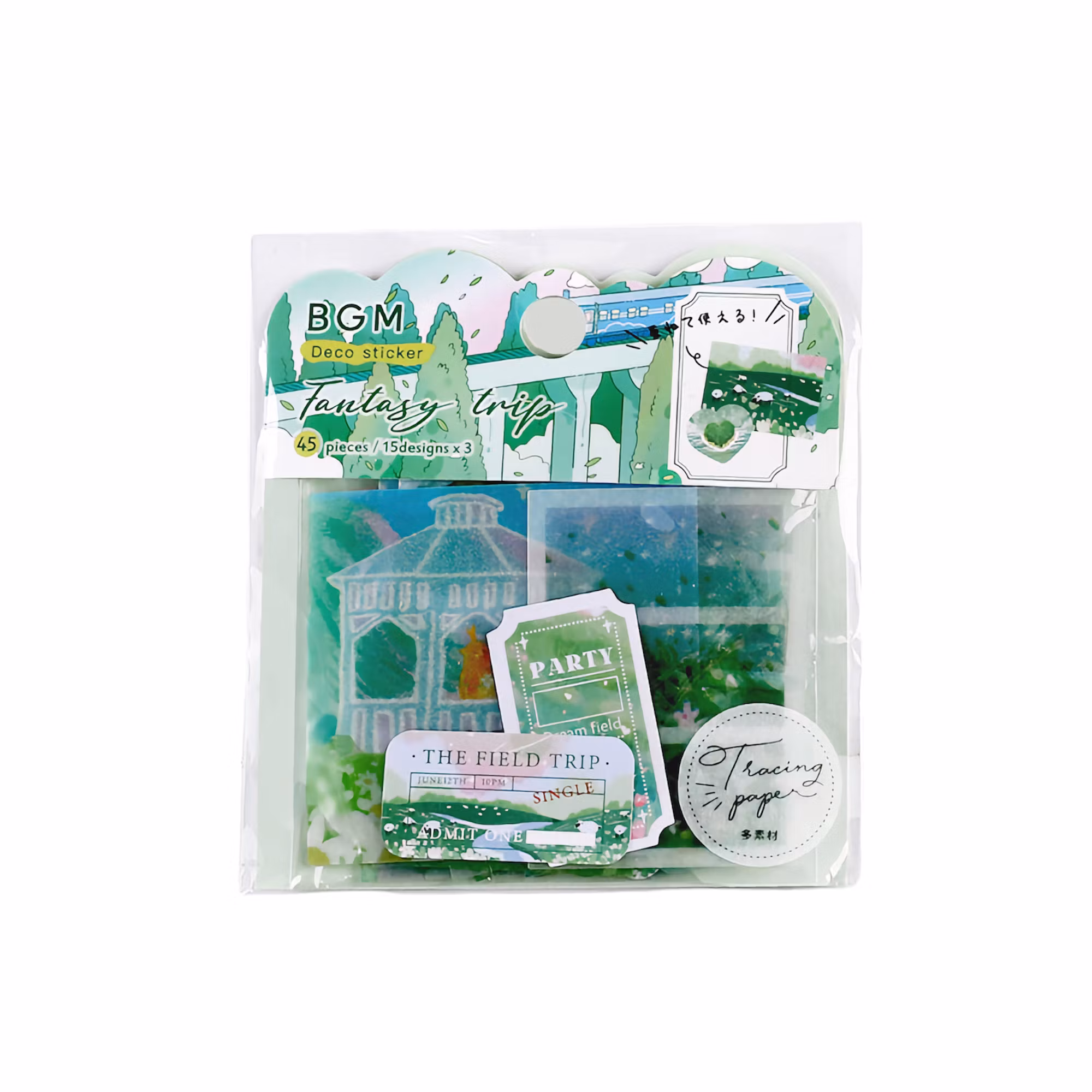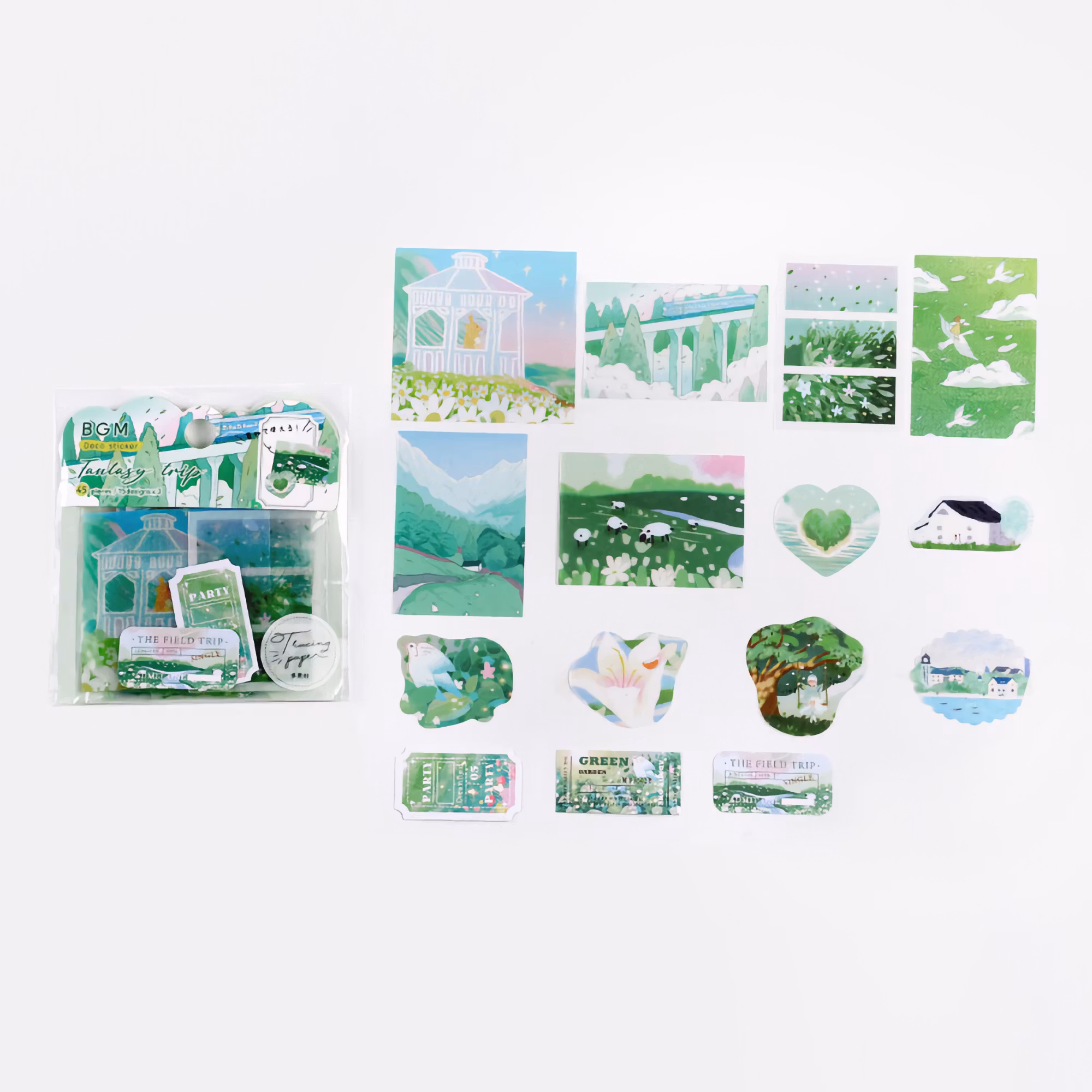 Fantasy Trip är liksom namnet antyder en serie inspirerad av fantasieggande resor. Det här paketet innehåller 45 klistermärken med ett drömskt trädgårdsmotiv.