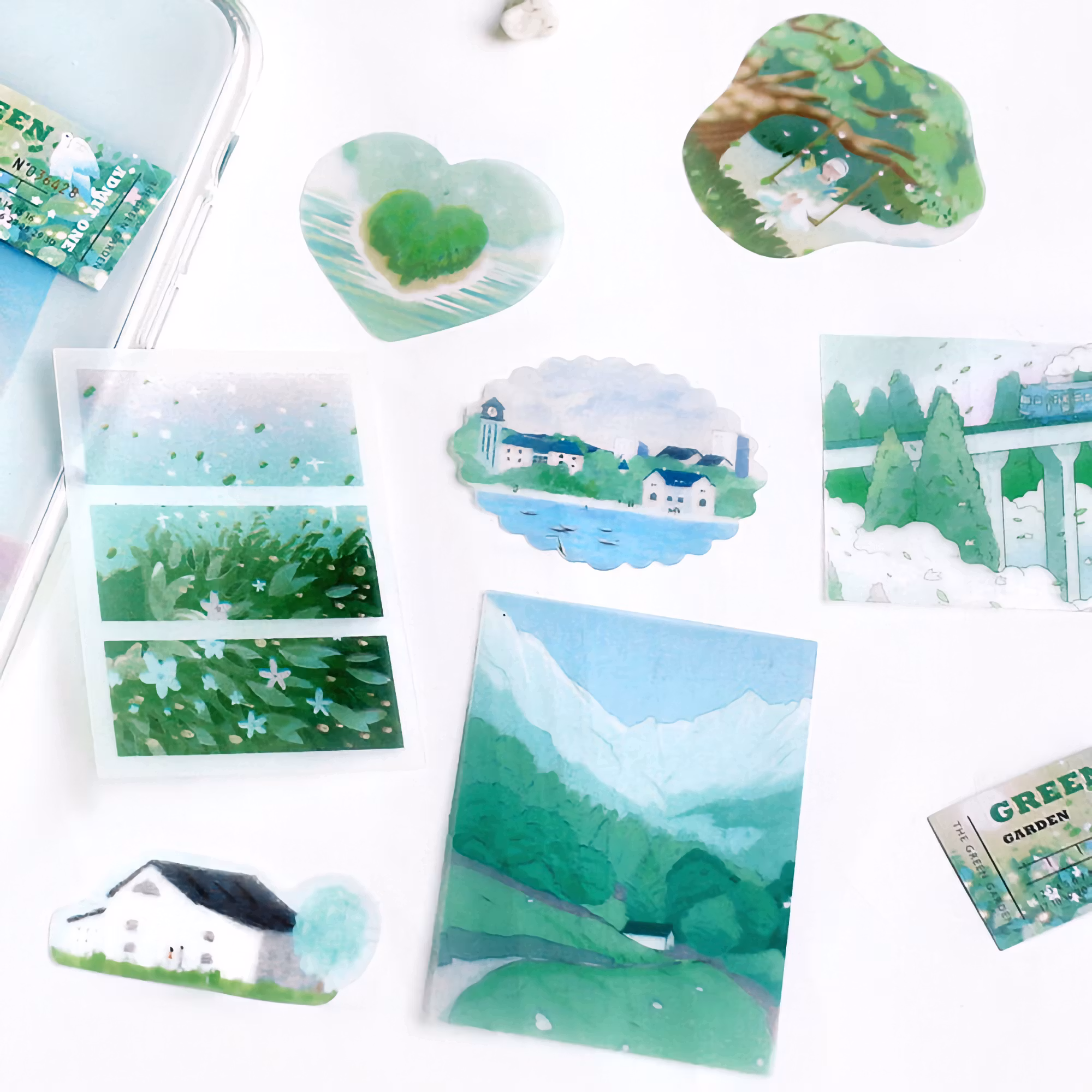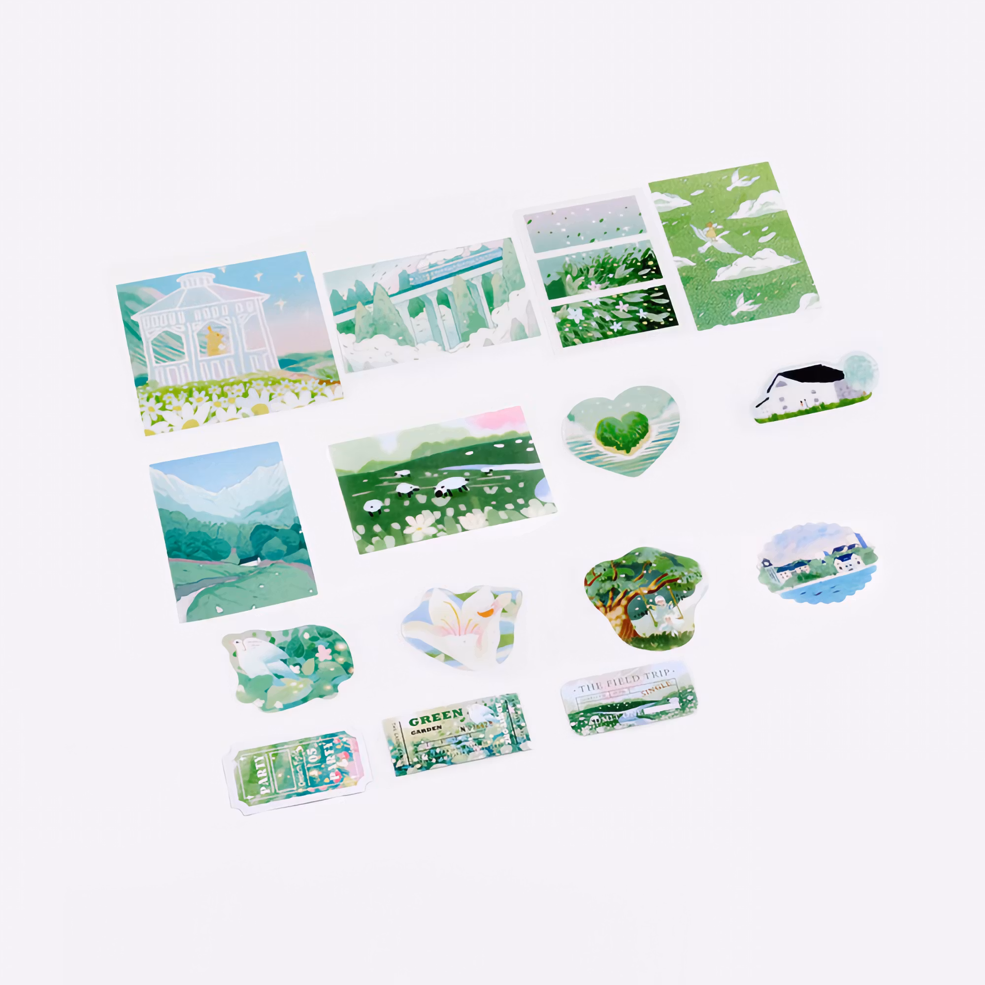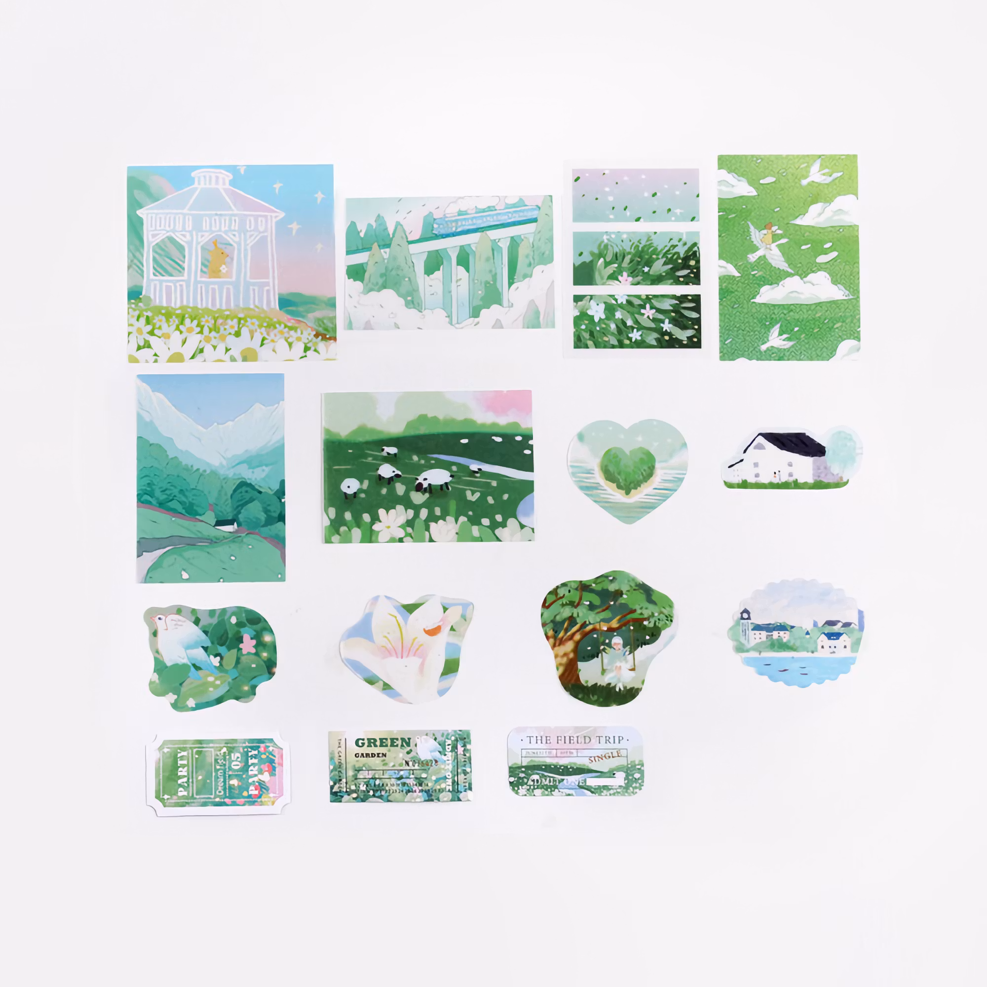 Fantasy Trip är liksom namnet antyder en serie inspirerad av fantasieggande resor. Det här paketet innehåller 45 klistermärken med ett drömskt trädgårdsmotiv.