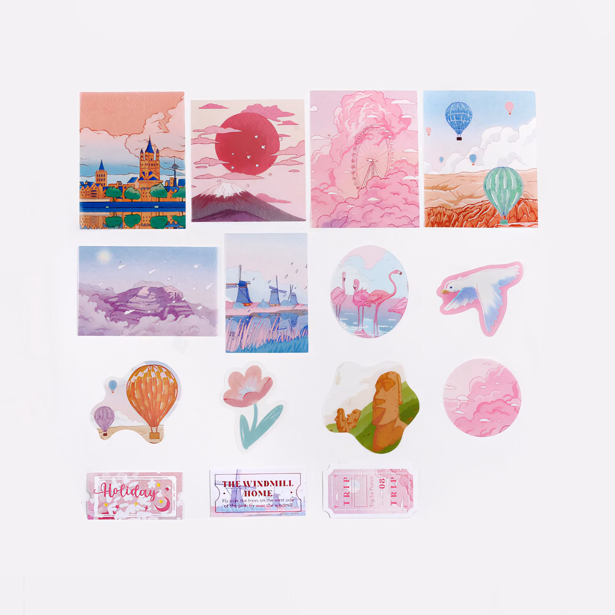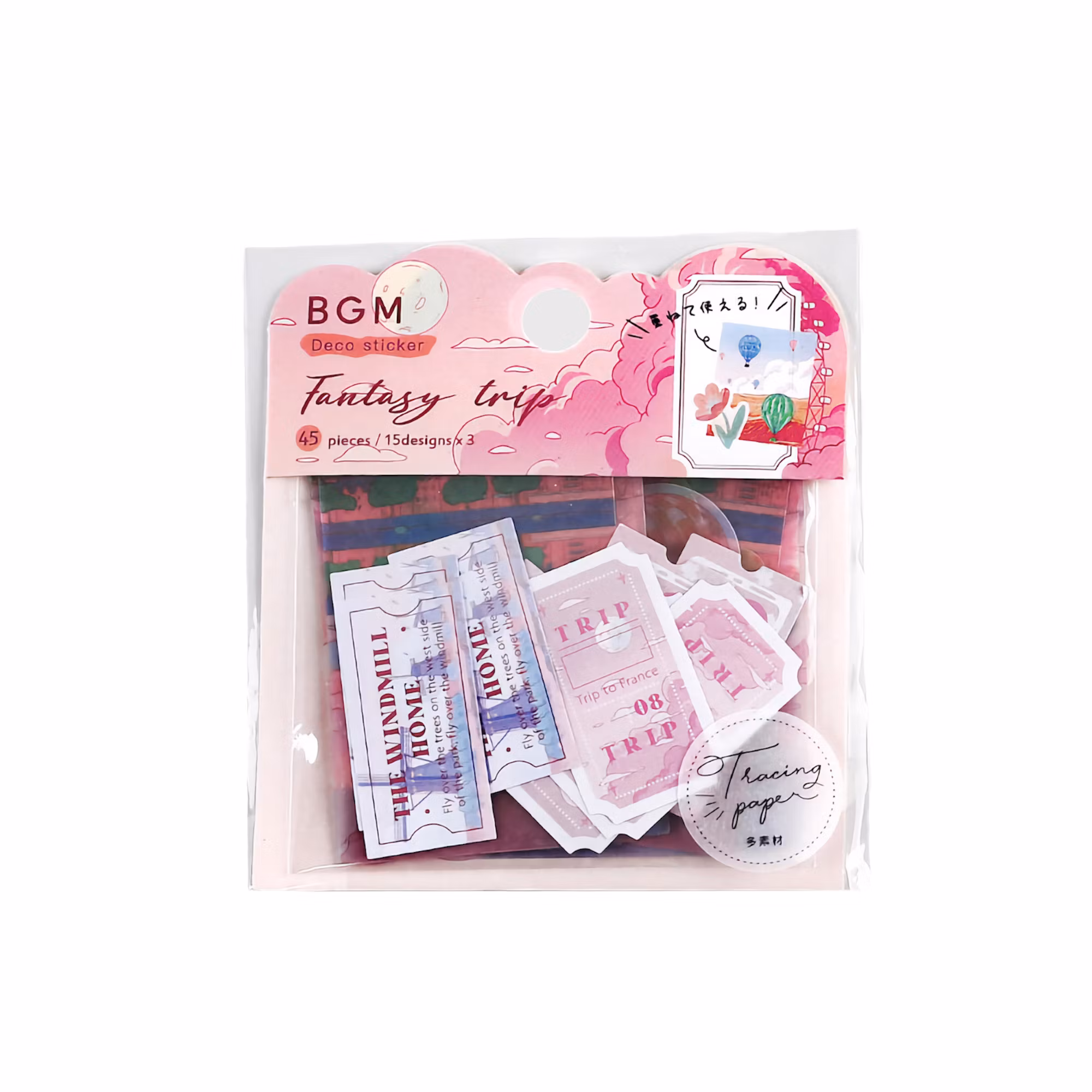 Fantasy Trip är liksom namnet antyder en serie inspirerad av fantasieggande resor. Det här paketet innehåller 45 klistermärken med ett drömskt motiv som går i rosa.