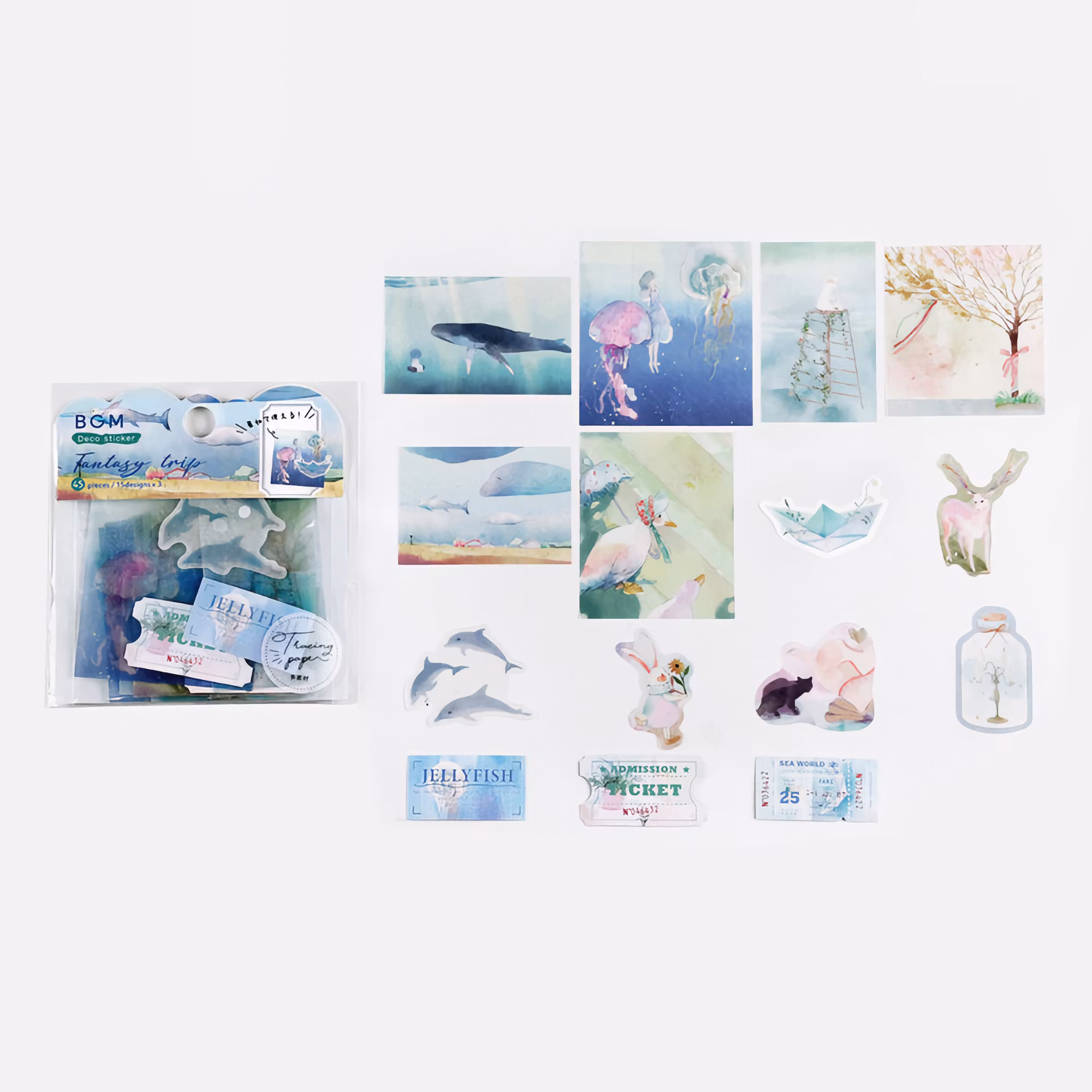 Fantasy Trip är liksom namnet antyder en serie inspirerad av fantasieggande resor. Det här paketet innehåller 45 klistermärken med ett drömskt motiv med ett slags underlandstema.