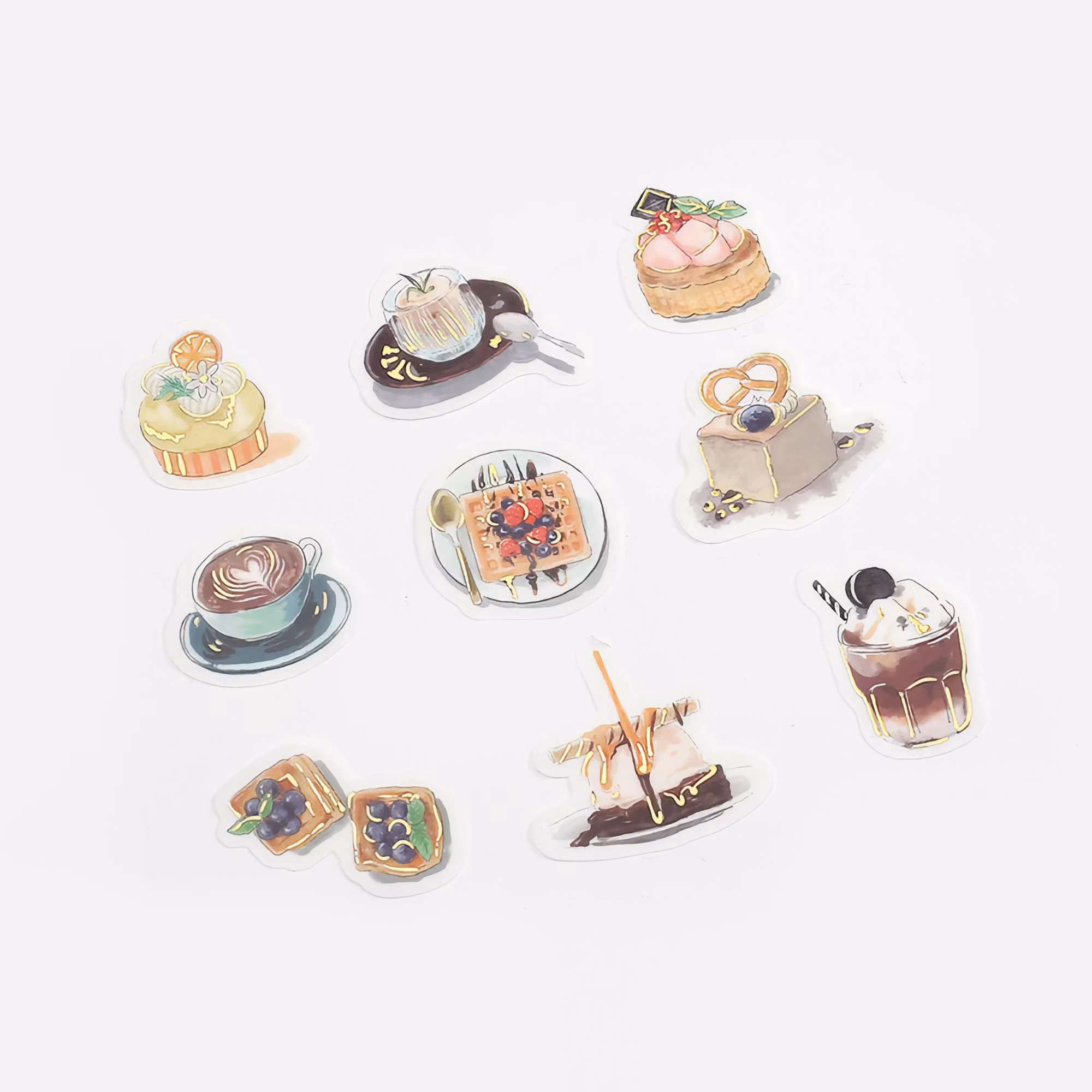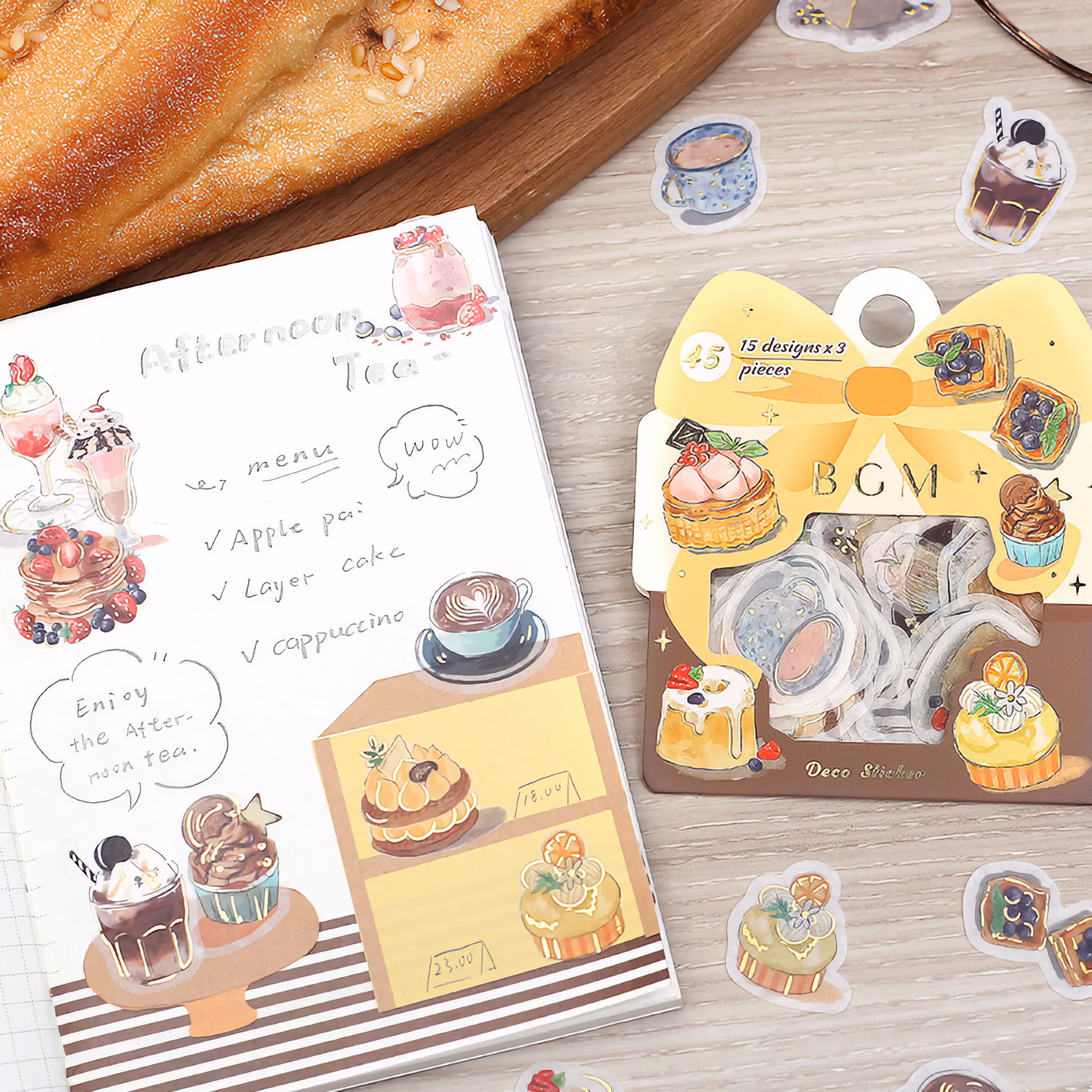 Det här paketet innehåller 45 kaféinspirerade klistermärken som mäter mellan ungefär 17 x 29 mm och 28 x 27 mm.