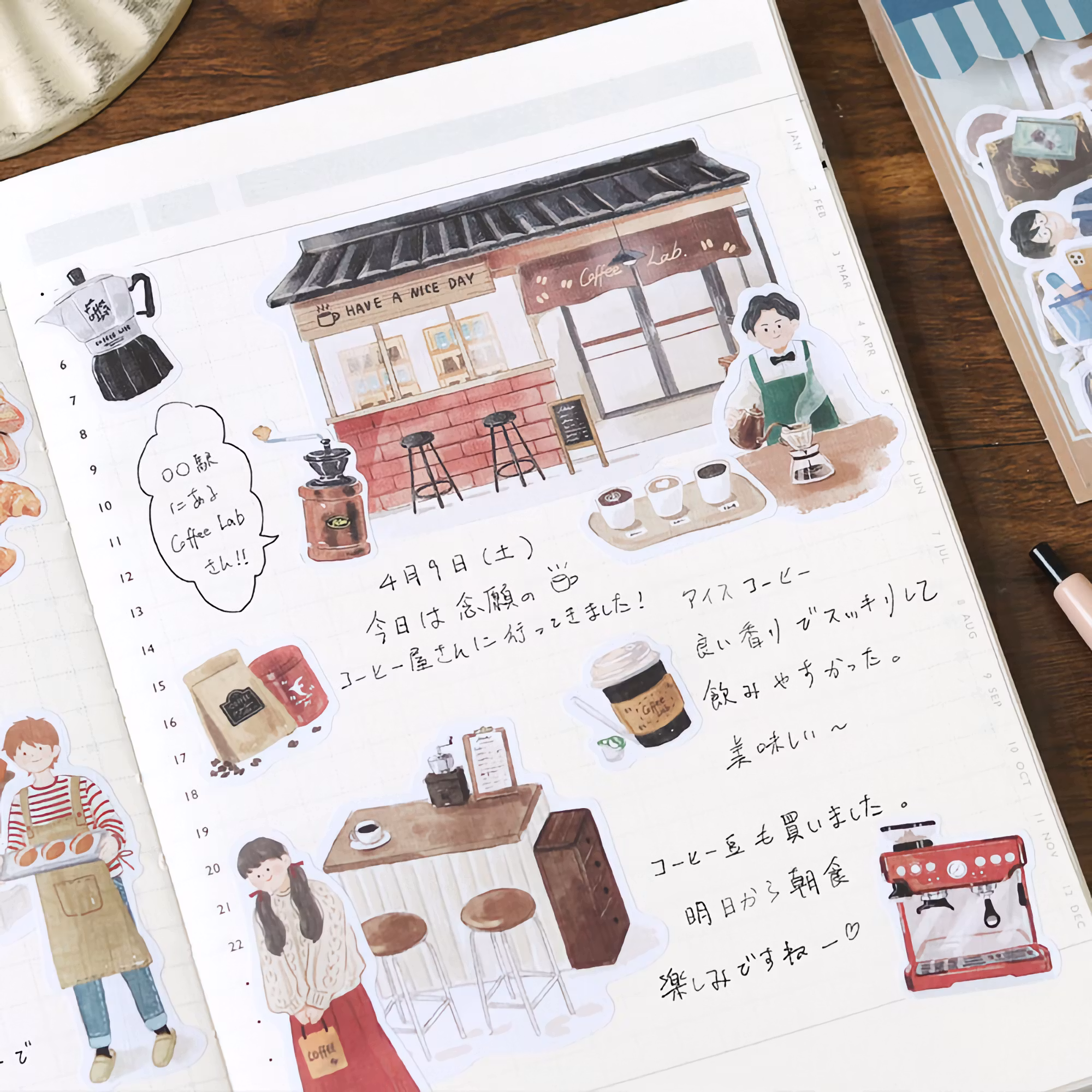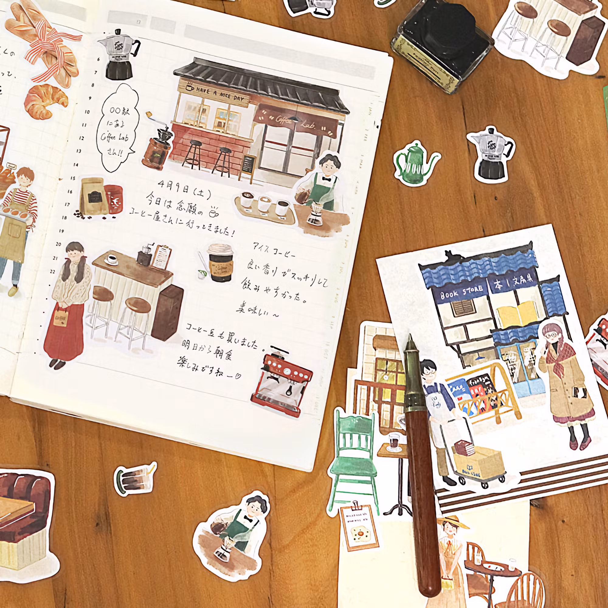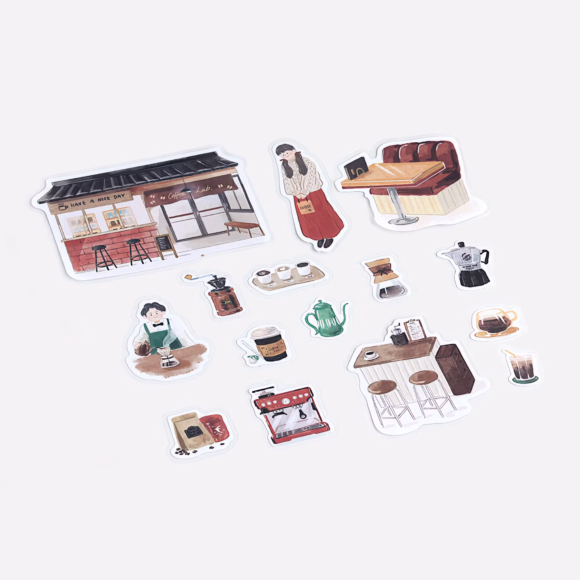 Little Shop är liksom namnet antyder en serie inspirerad av mysiga små butiker och kaféer. Det här paketet innehåller 45 klistermärken med kafémotiv.