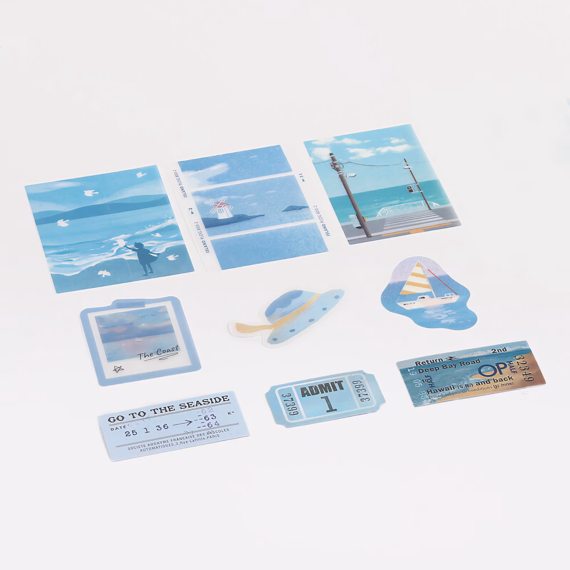 Travel Diary är liksom namnet antyder en serie inspirerad av resor. Det här paketet innehåller 45 klistermärken med ett drömskt havsmotiv.