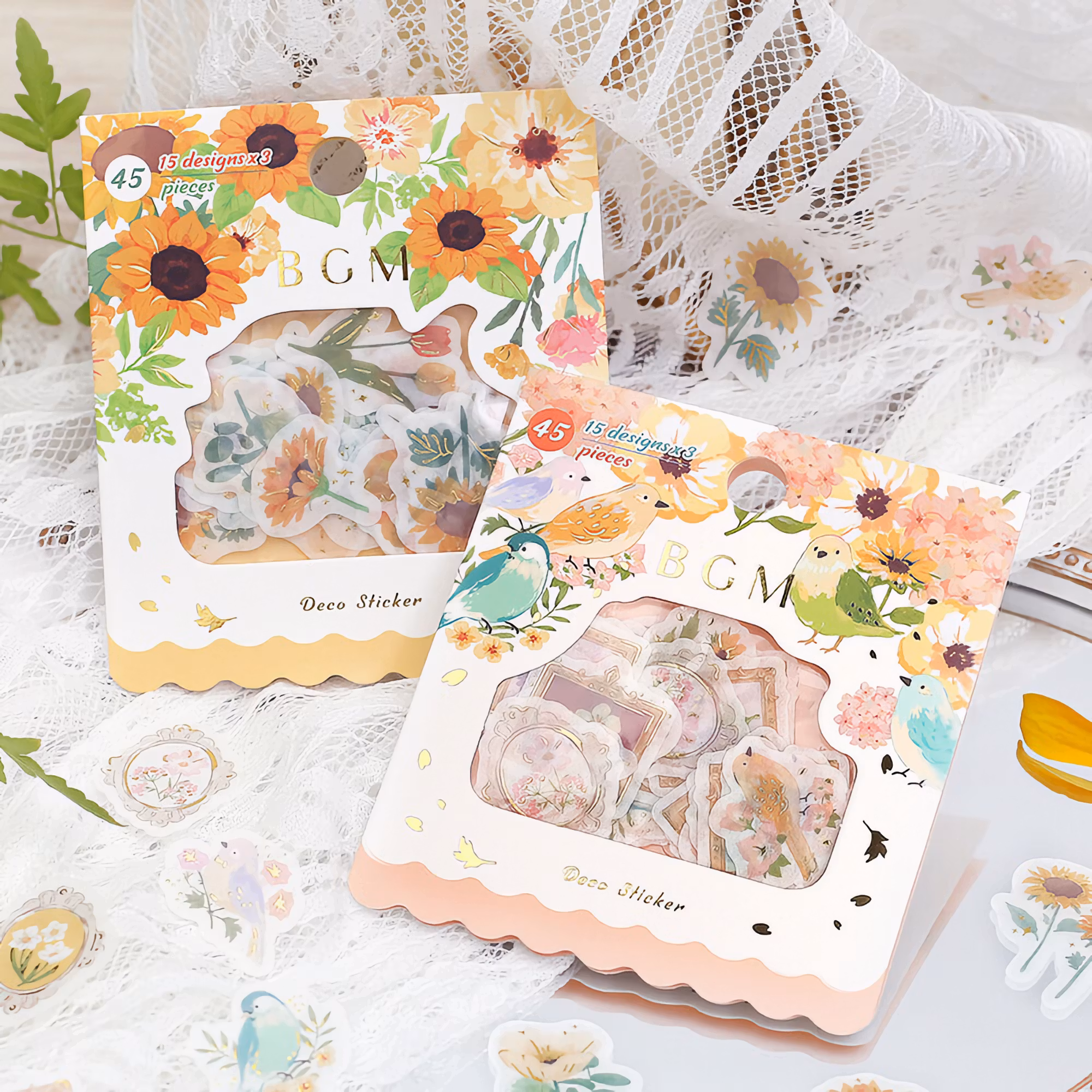 Det här paketet innehåller 45 klistermärken inspirerade av blommor.