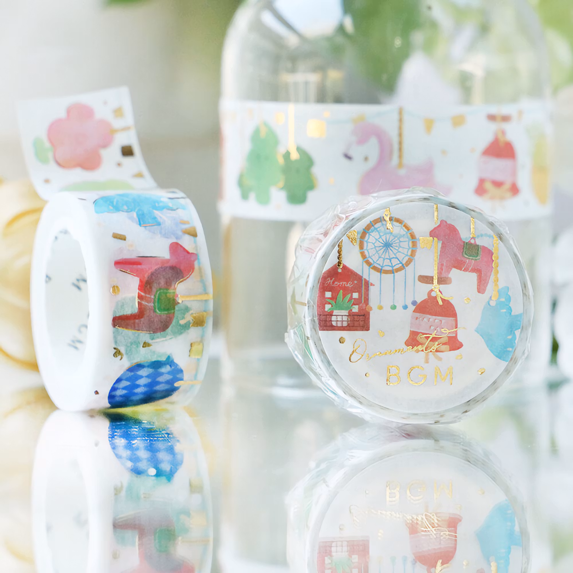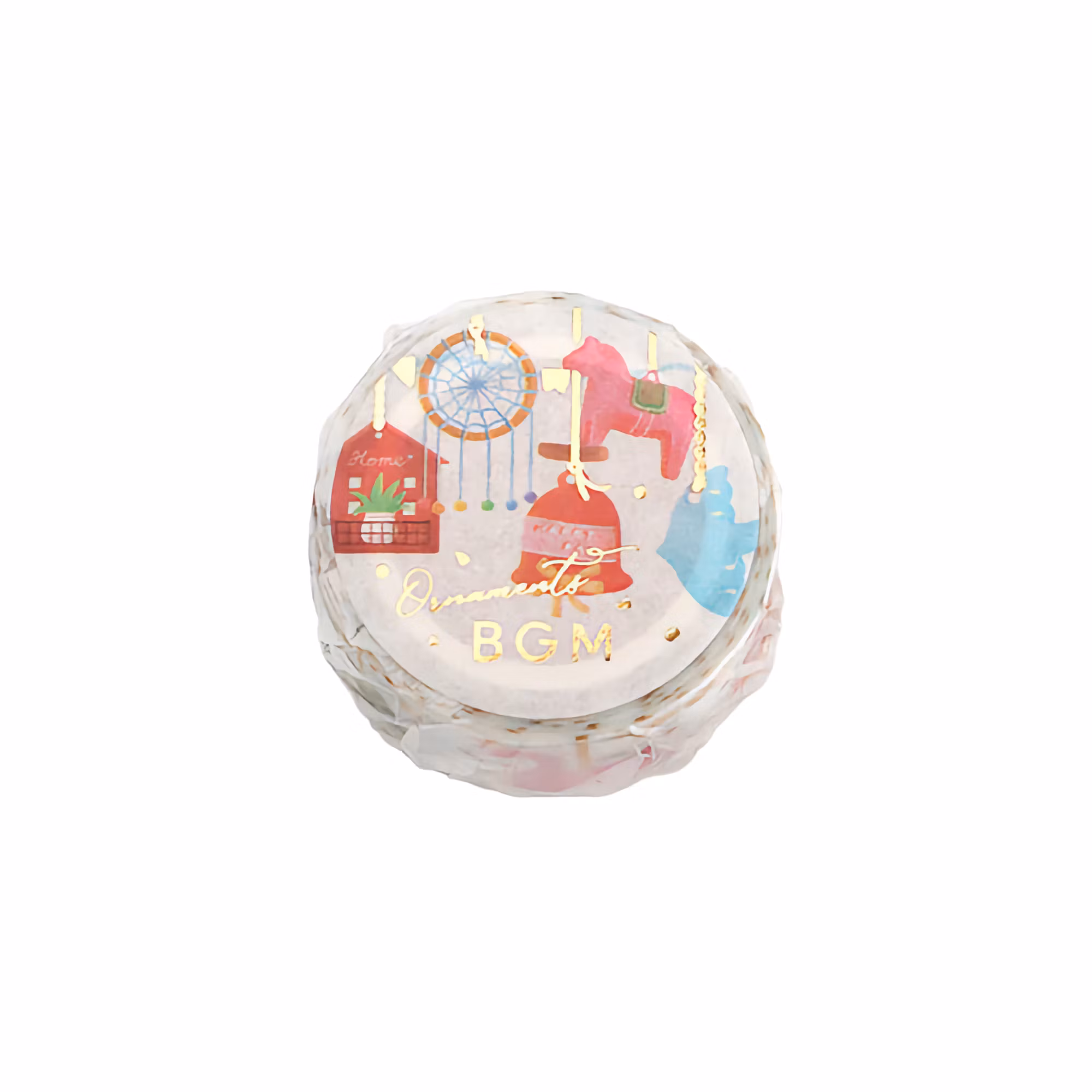 Washitejp med ornamentmotiv från japanska BGM. Tejpen har ett guldfolieutförande, vilket gör att motivet glänser extra mycket.