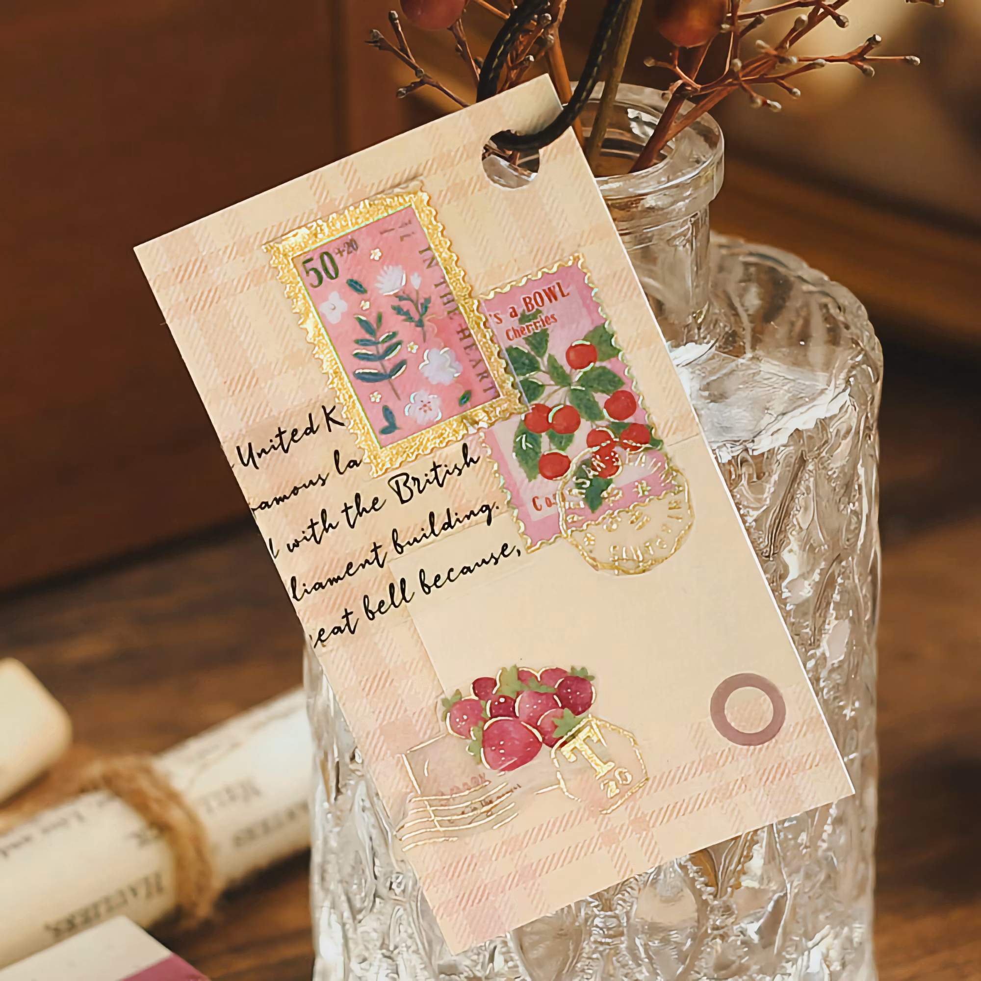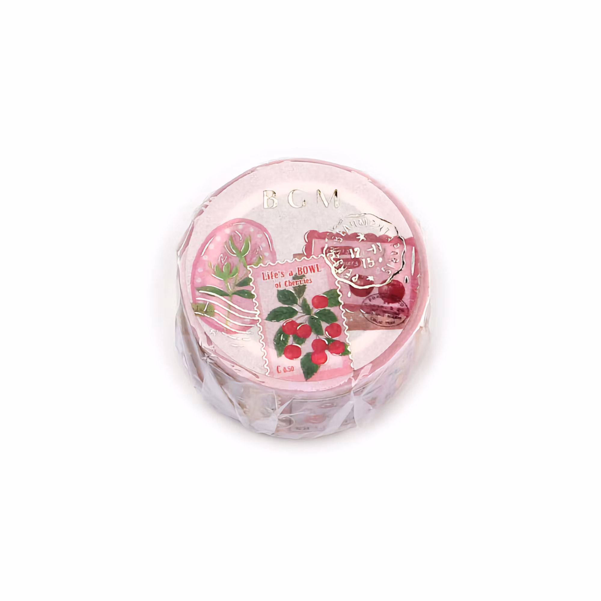 Washitejp med frimärkesinspirerat motiv från japanska BGM. Tejpen har ett guldfolieutförande, vilket gör att motivet glänser extra mycket.