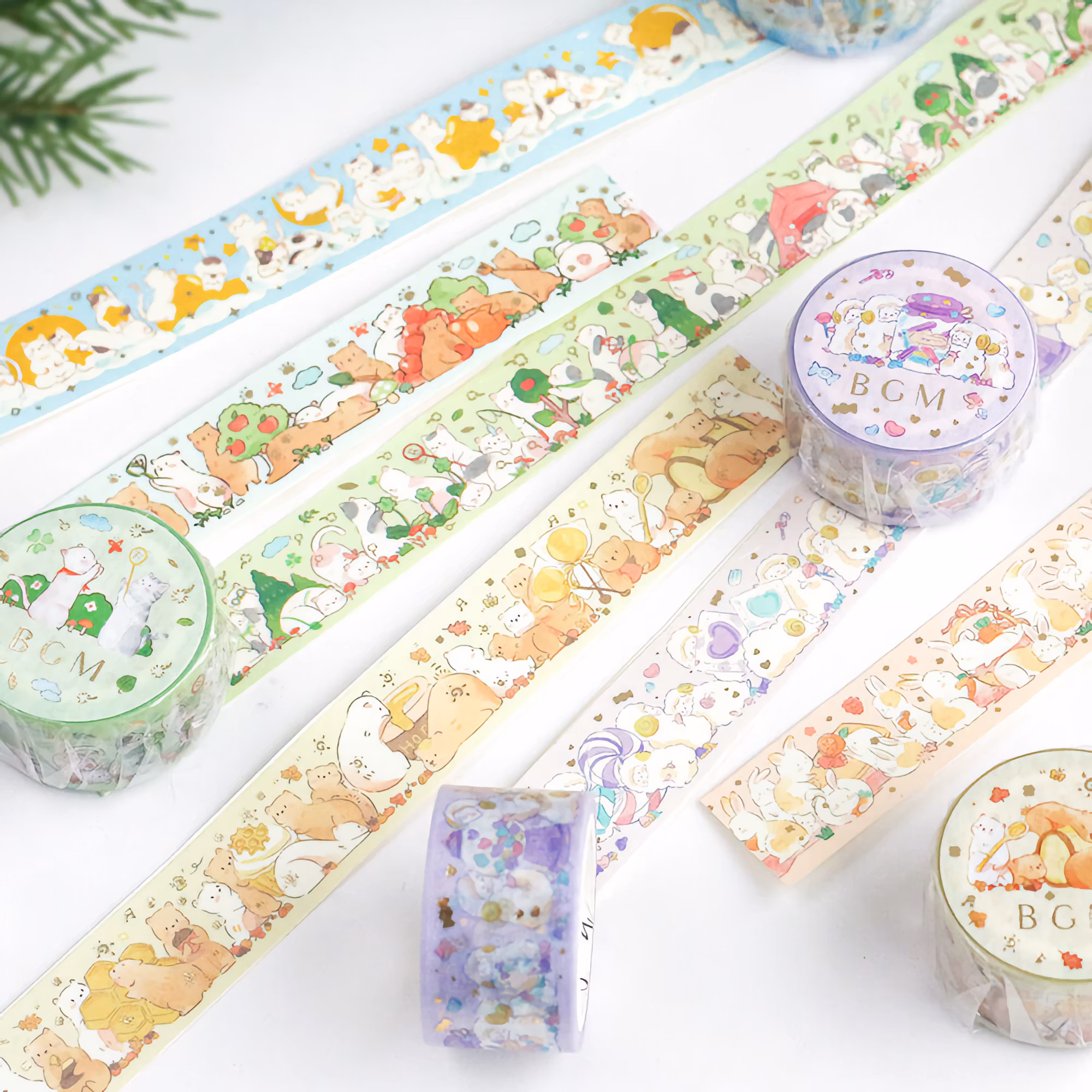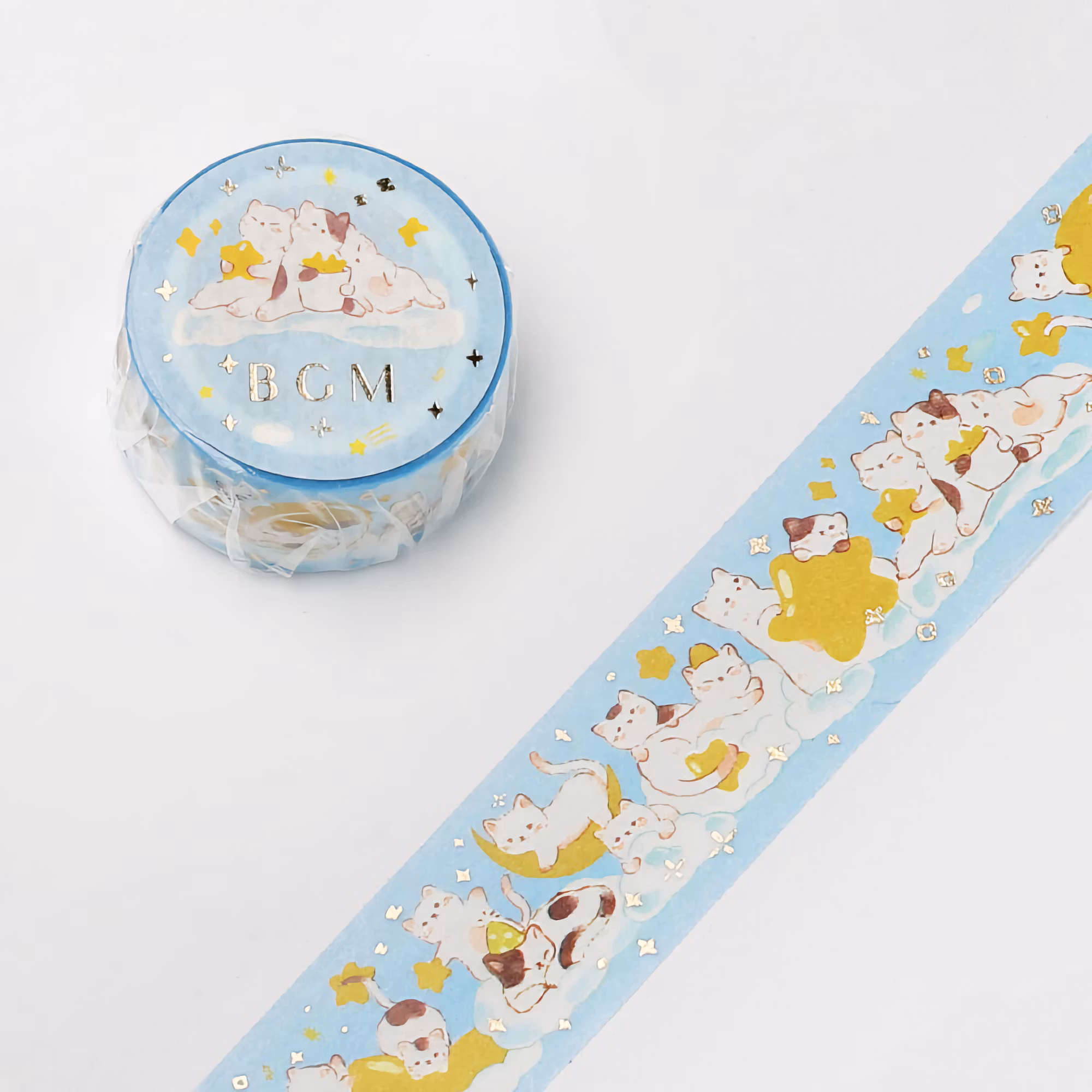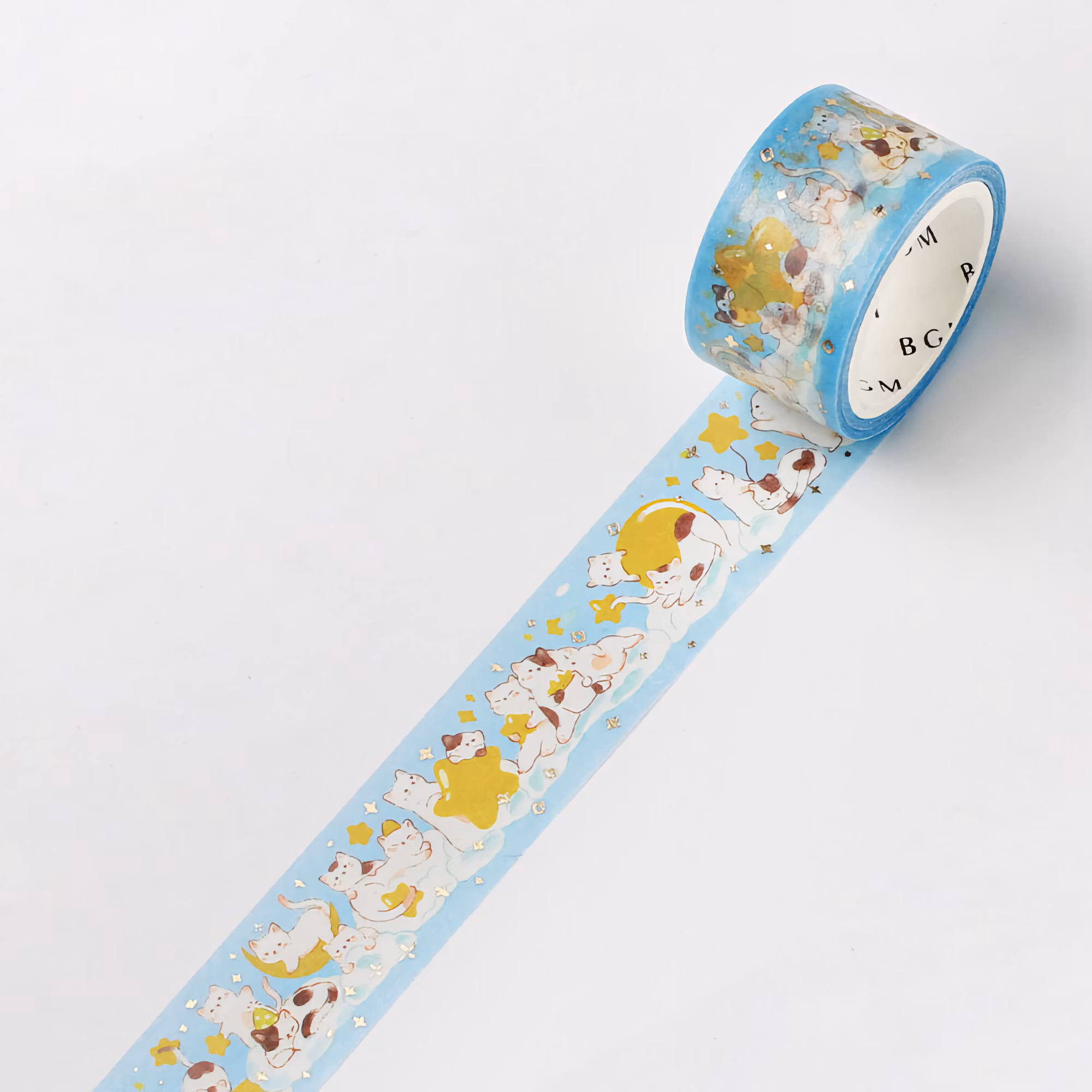 Washitejp med nattinspirerade djur från japanska BGM. Tejpen har ett folieutförande, vilket gör att motivet glänser extra mycket.
