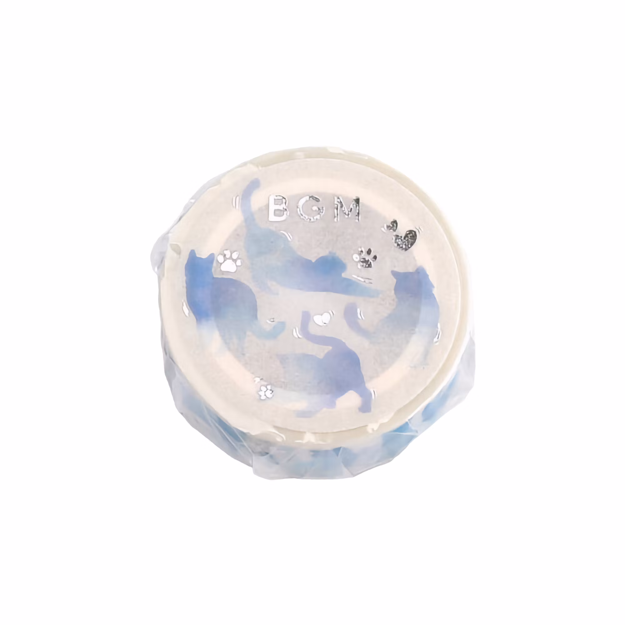 Washitejp med kattmotiv från japanska BGM. Tejpen har ett folieutförande, vilket gör att motivet glänser extra mycket.