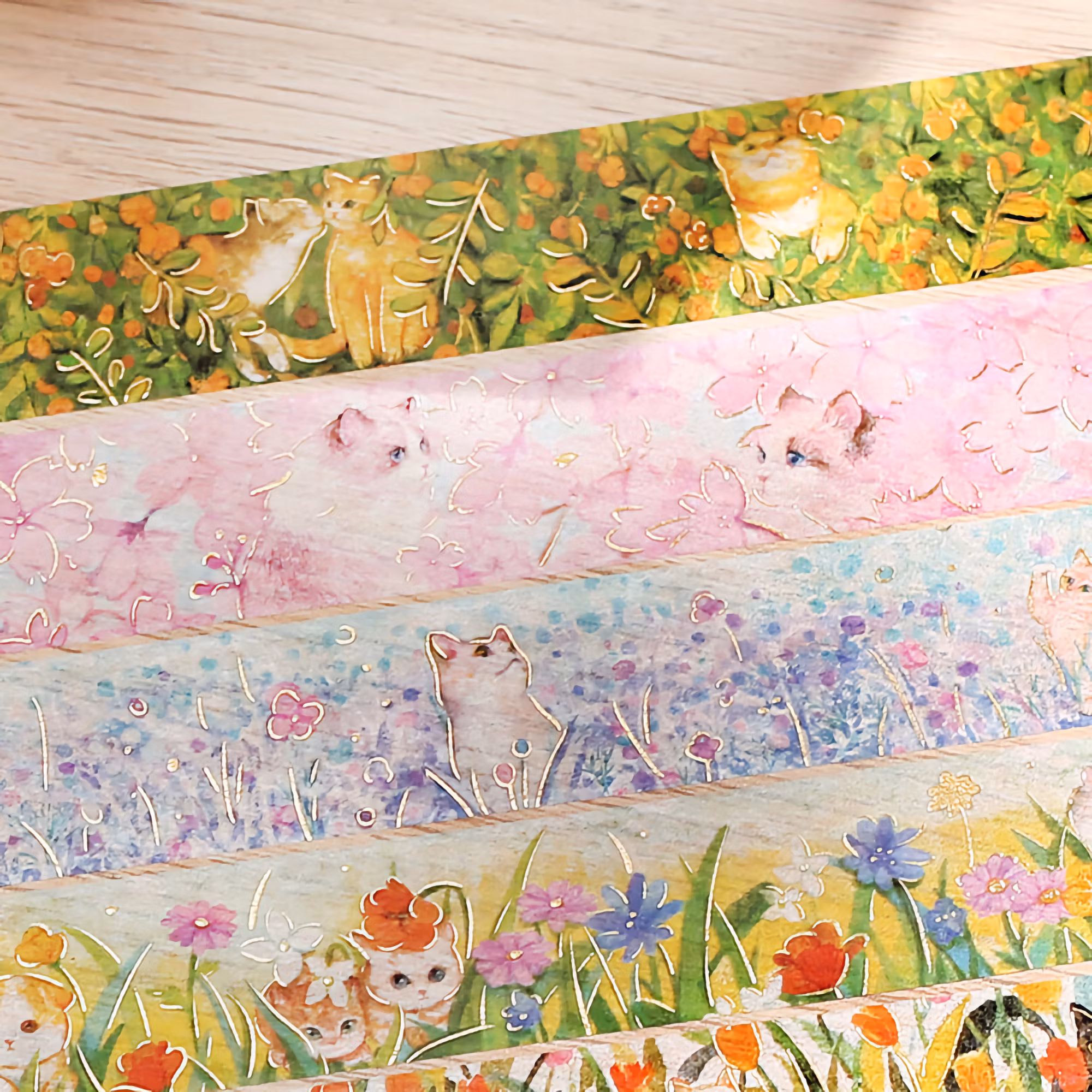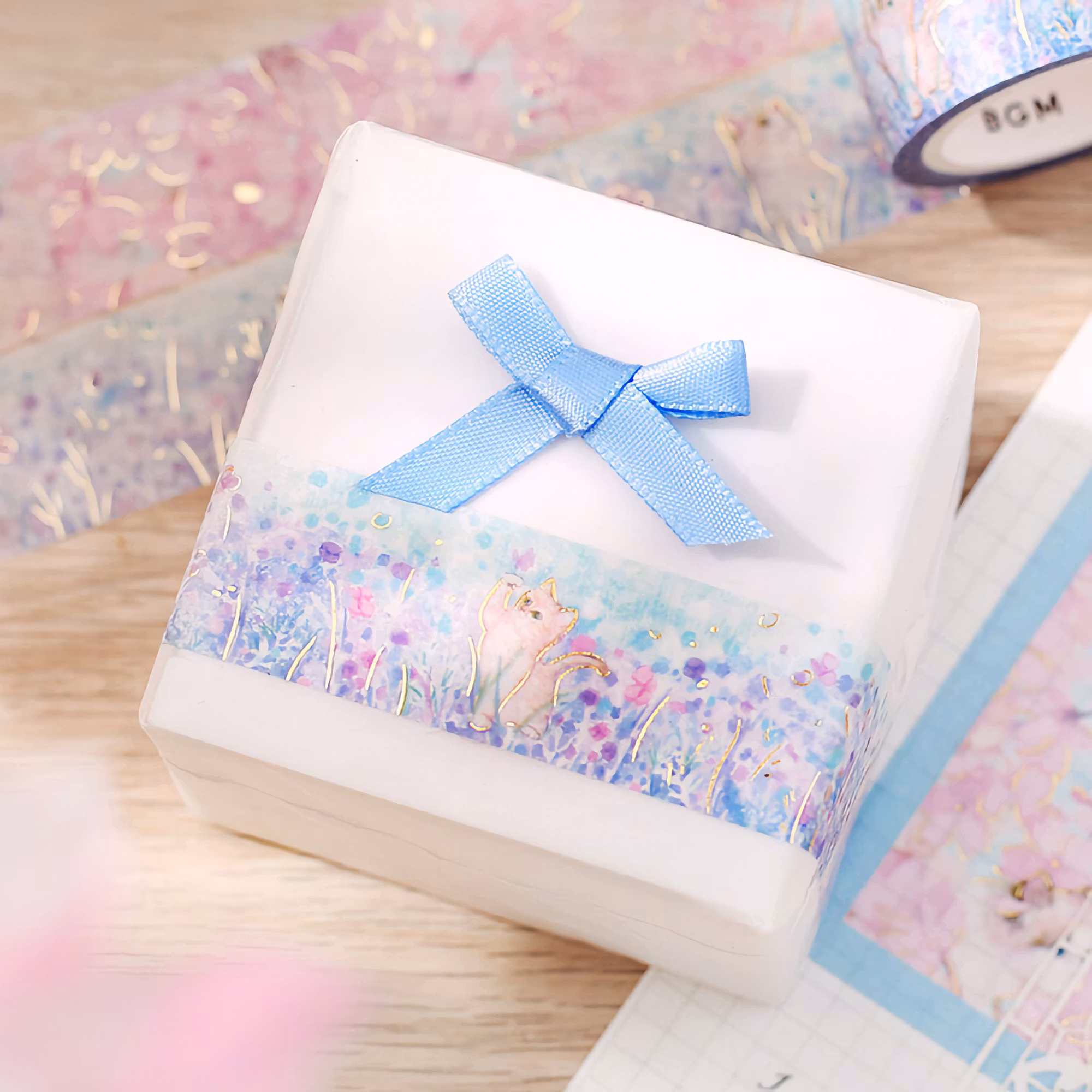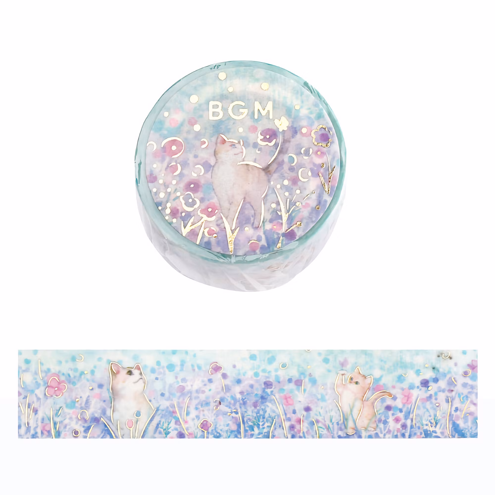 BGM Washi Tape Special Foil Flowers and Cats / Small Friends 20 mm