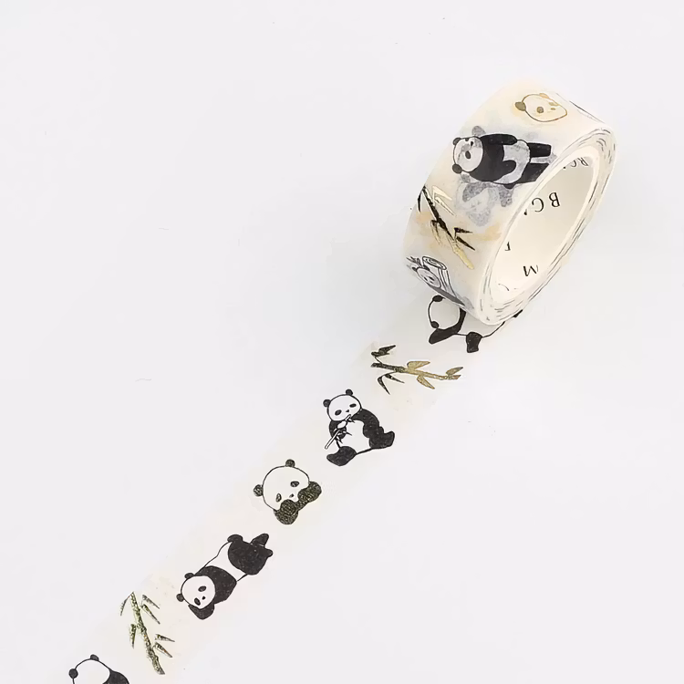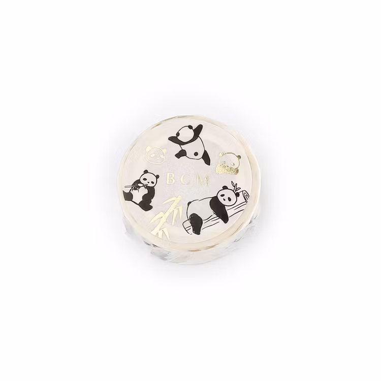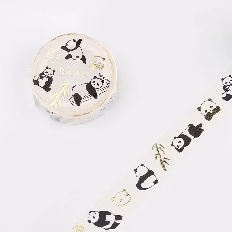 Washitejp med pandamotiv från japanska BGM. Tejpen har ett folieutförande, vilket gör att motivet glänser extra mycket.