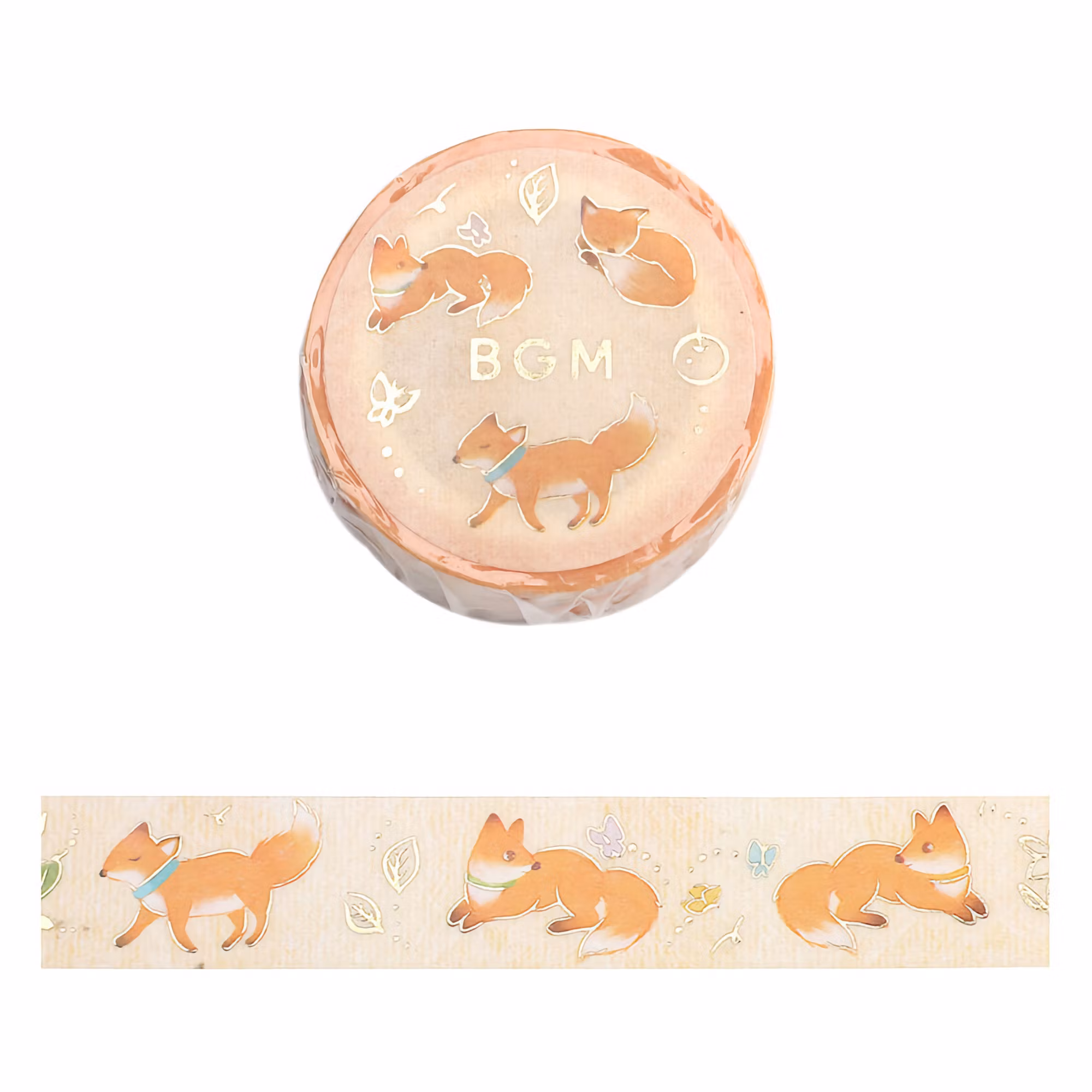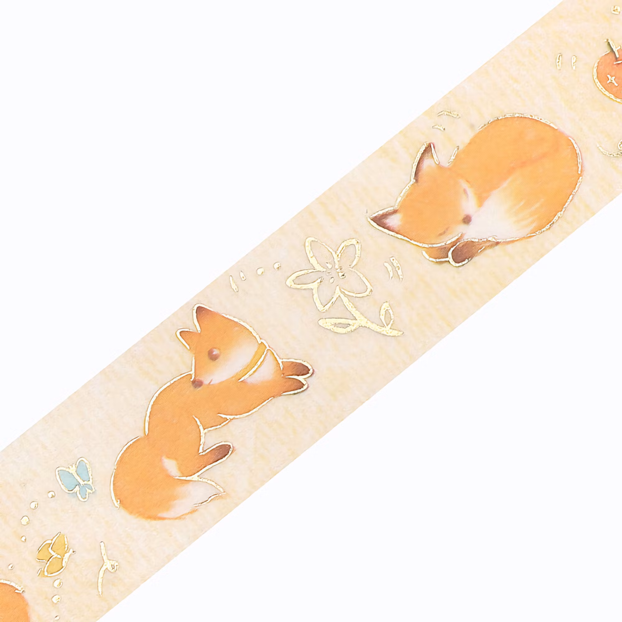Washitejp med rävmotiv från japanska BGM. Tejpen har ett folieutförande, vilket gör att motivet glänser extra mycket.