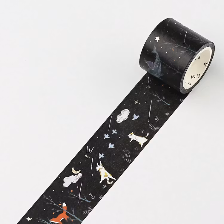 Washitejp med skogsnattsmotiv från japanska BGM. Tejpen har ett folieutförande, vilket gör att motivet glänser extra mycket.