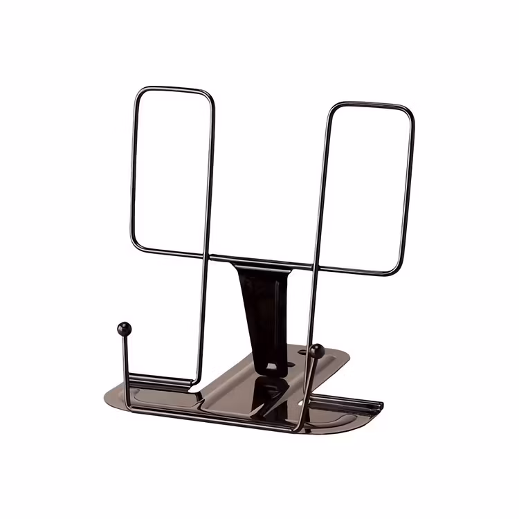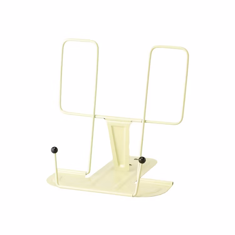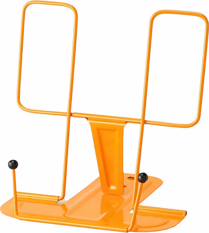 Vinkeln kan justeras i tre steg. När stället inte används går det enkelt att vika ihop. Finns i flera olika färger.