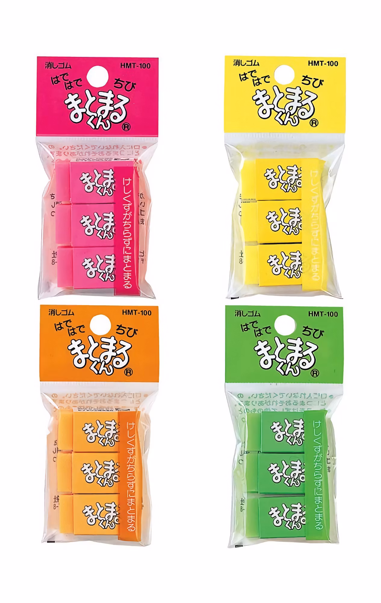 Hinodewashis suddgummi まとまるくん (Matomaru-kun) är på grund av sin uppsamlande förmåga ett mycket populärt suddgummi i Japan. Skräpet som bildas när du suddar samlas nämligen i prydliga högar, och en del fastnar också på själva suddet. Matomaru betyder nämligen just det – att samla in.