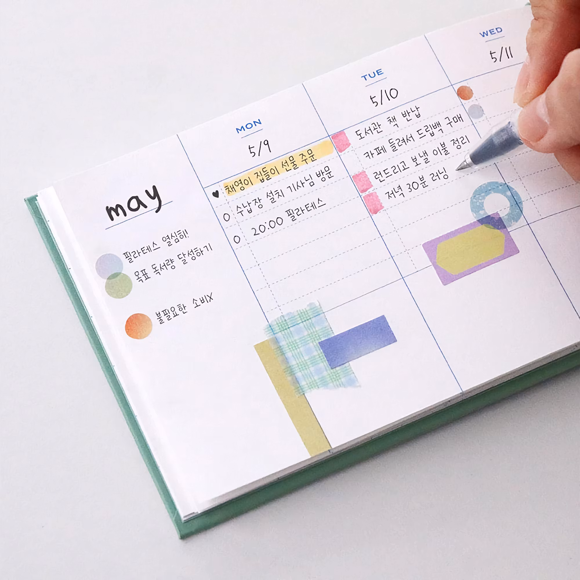 Kalendern innehåller månads- och veckolayouter, checklistor och tomma (rutade) sidor för snabba anteckningar. Tack vare det praktiska fickformatet är den enkel att bära med sig precis överallt.