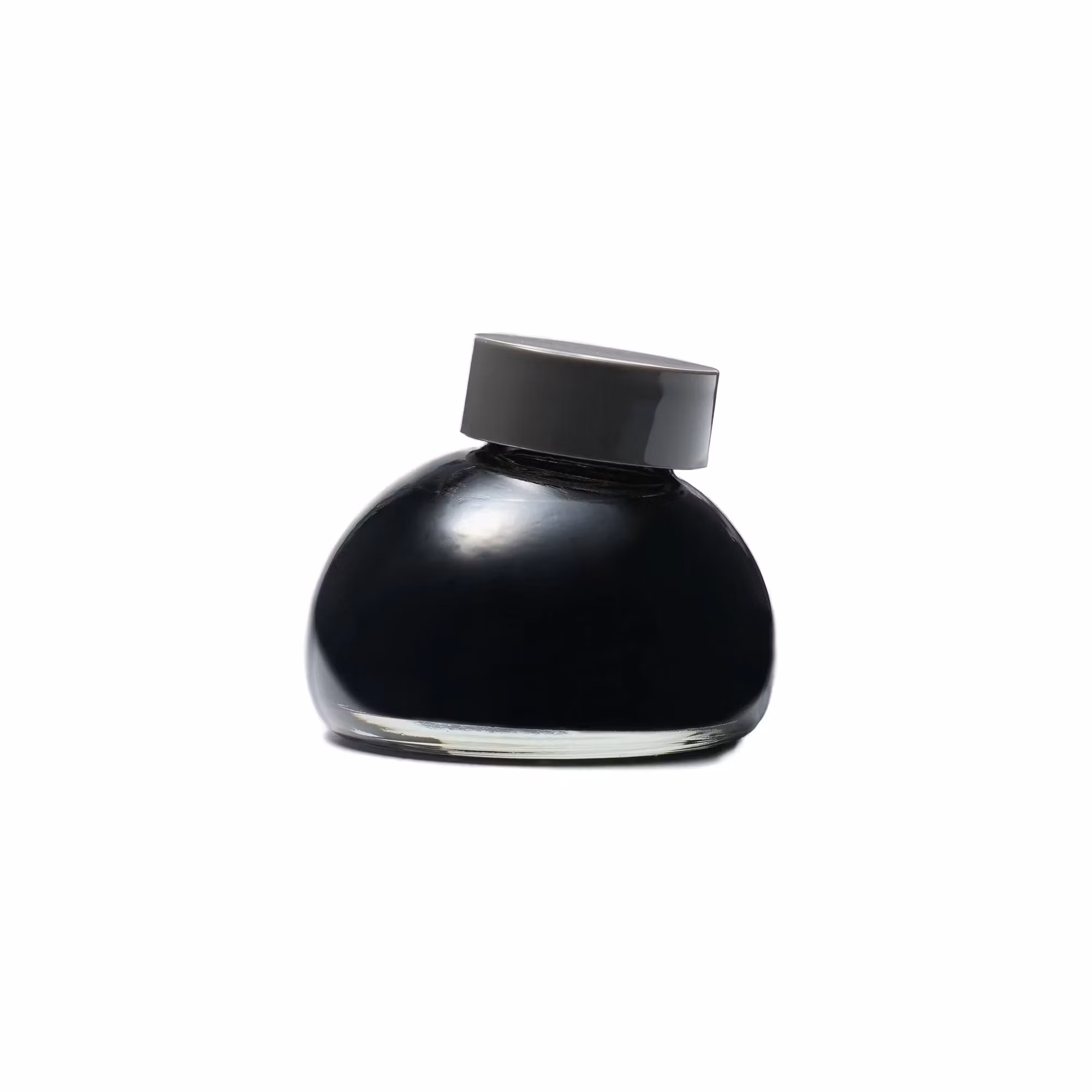 Kakimoris pigmentbaserade bläck i vackert utformade glasflaskor – som med sin form inbjuder till att doppa pennan.