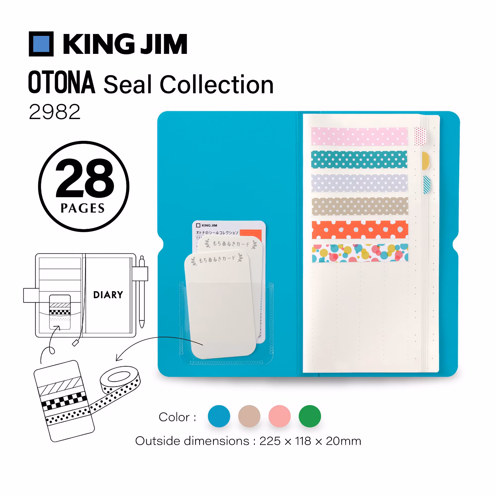 Har du också lite för många washitejper? King Jims Seal Collection Book for Washi Tape är en praktiskt mapp för att hålla reda på dem! Fodralet har 28 sidor (14 blad) med klistermärkespapper som passar utmärkt för att förvara skurna bitar av dina favorit-washitejper. Pappret är punktat för att underlätta rak insättning.