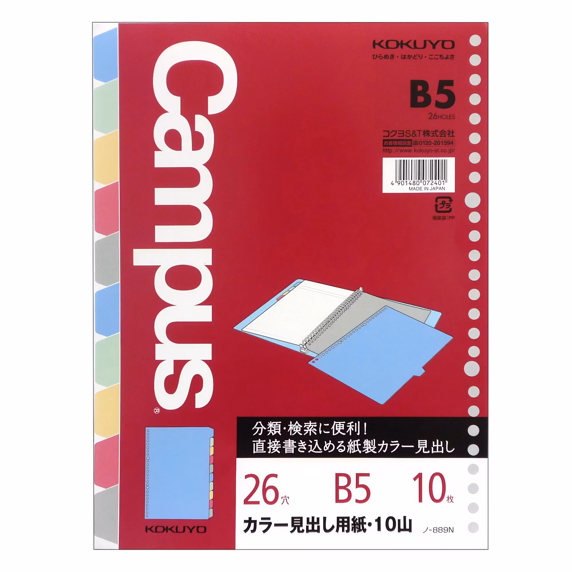 Med den här färgglada avdelaren från Kokuyo är det enkelt att hålla ordning i din B5-pärm! Avdelaren har 26 hål placerade med ett mellanrum på ungefär 9,7 mm. Flikarna är i papp, vilket gör dem enkla att skriva på. Finns också i en variant med 5 flikar.
