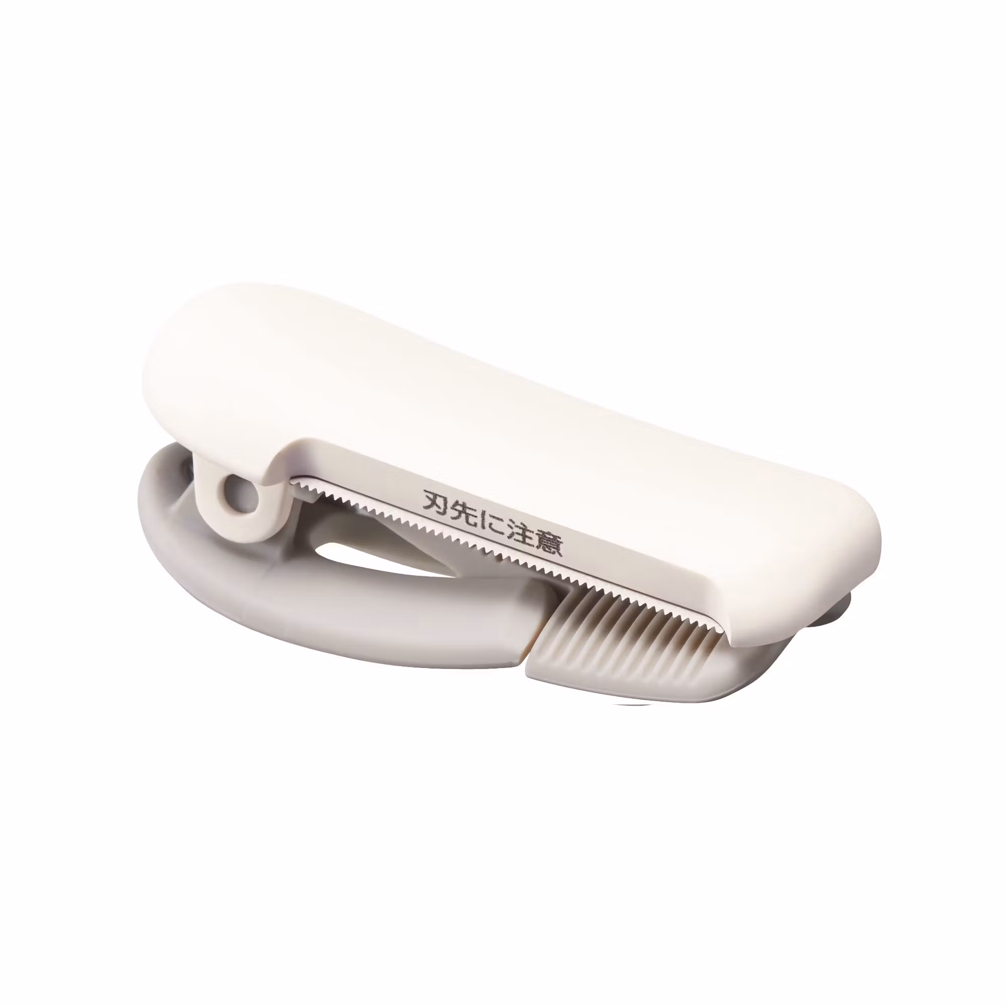 Riv av dina washitejper med finess med den här geniala washitejpskäraren från Kokuyo! Skäraren kläms enkelt fast på rullen, och ger en snygg, fintandad kant i änden av varje avskuren remsa washitejp. Tryck bara på änden med fjädern för att öppna skäraren och kläm fast den på tejprullen. Skäraren glider sedan smidigt över washitejprullen, så att du enkelt kan dra ut önskad mängd tejp.