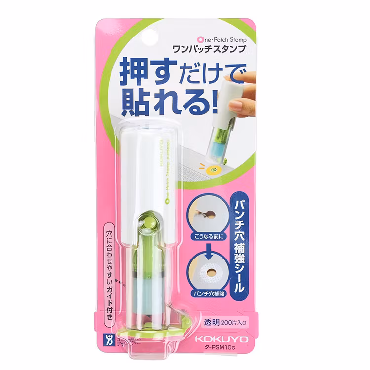 Är du trött på att dina hålade papper ofta får revor som gör det svårt att använda dem i en pärm? Med Kokuyos behändiga hålförstärkare slipper du det här besväret. Lägg bara hålet över basplattans lilla bula och tryck ner stämpeln för att placera förstärkningsklistermärket.