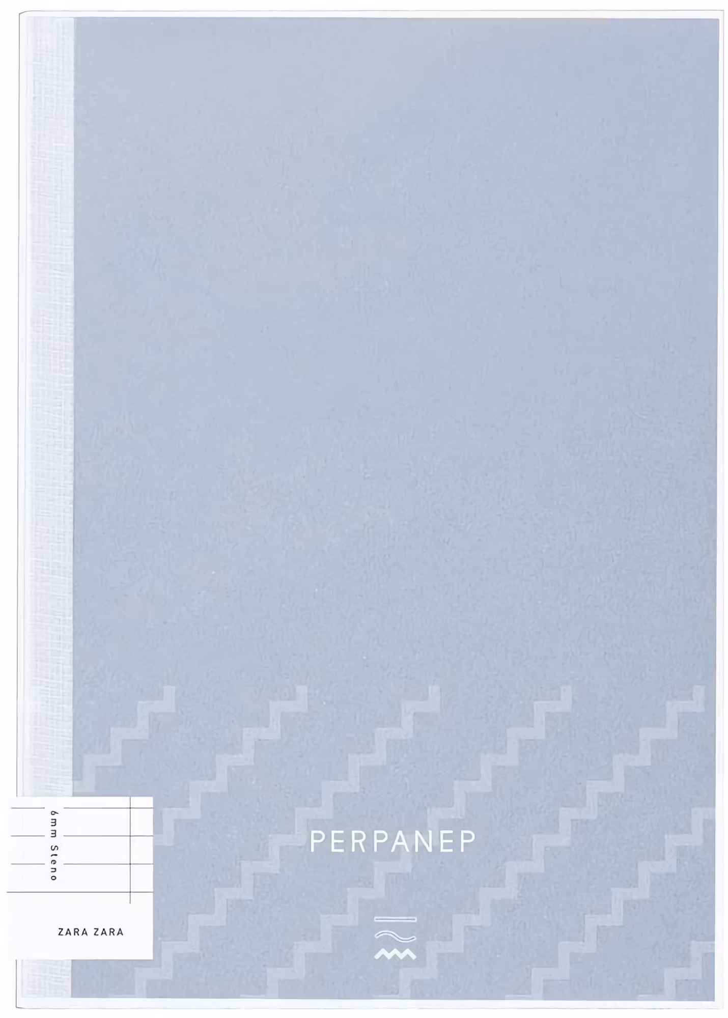 Den här anteckningsboken är linjerad (6 mm), med en skiljelinje i mitten som delar upp varje sida i två kolumner. Se fler utföranden med Zara Zara-papper här.