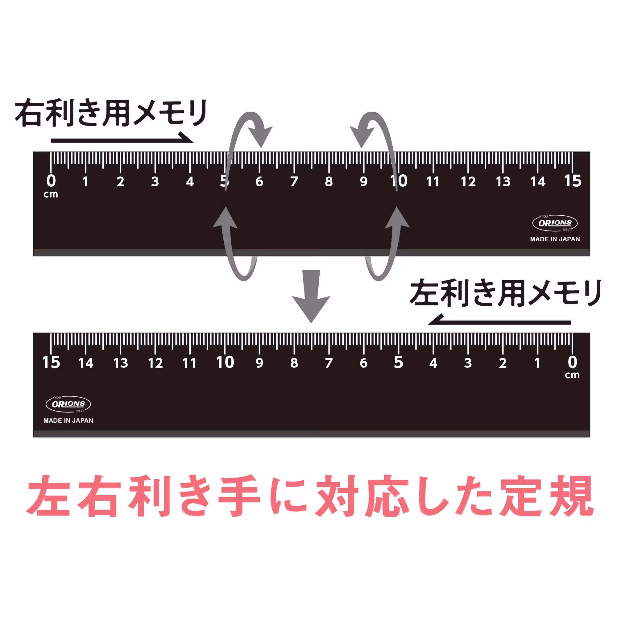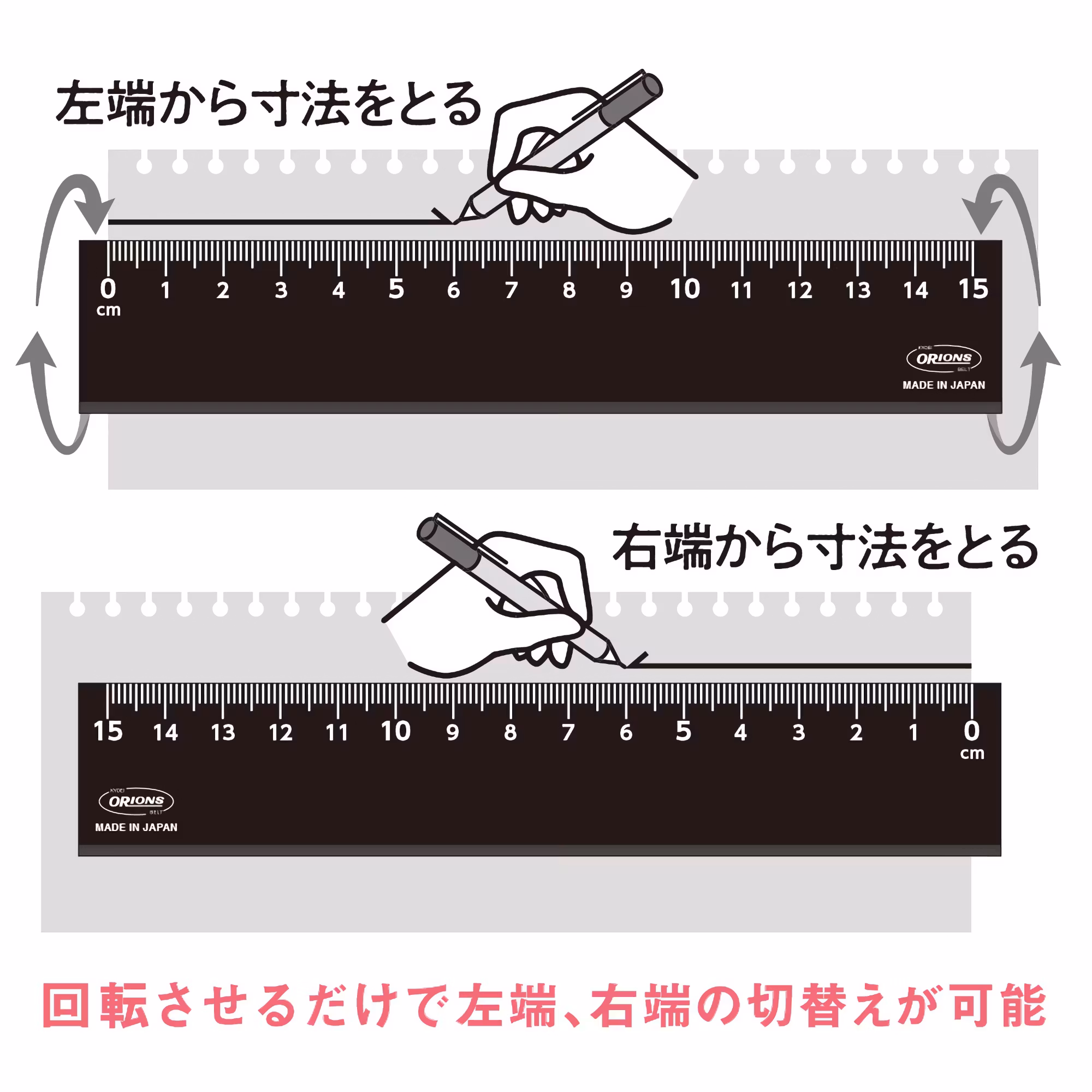 Kyoeis Orions LR Left & Right Handed Ruler lämpar sig som namnet antyder lika väl både höger- och vänsterhänta. Vänd helt enkelt linjalen upp och ner, så mäter linjalen 15 – 0 i stället för 0 – 15 cm.