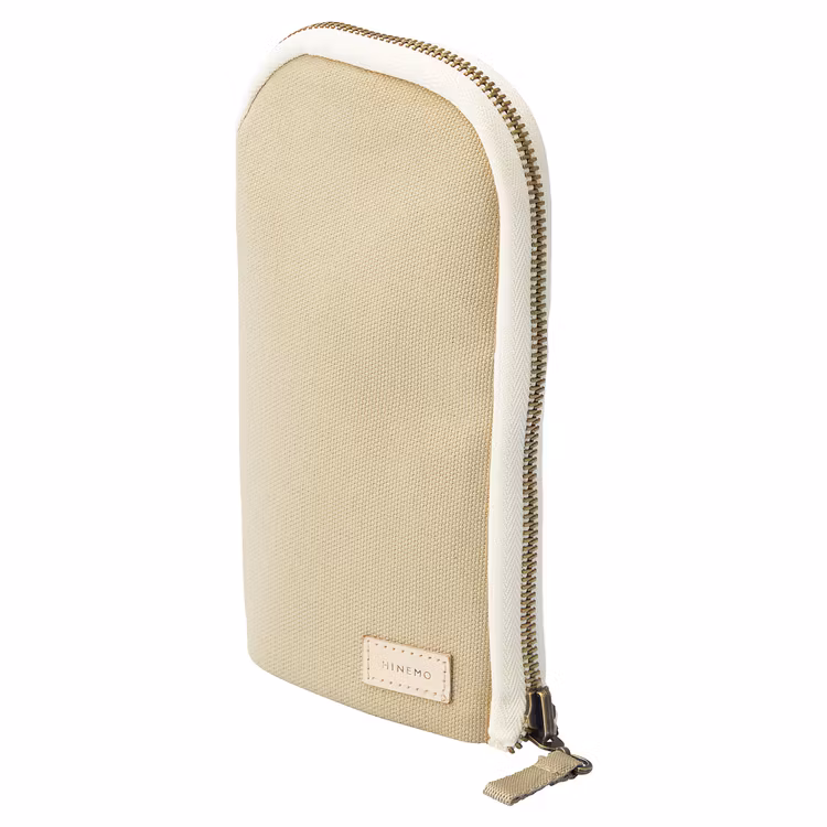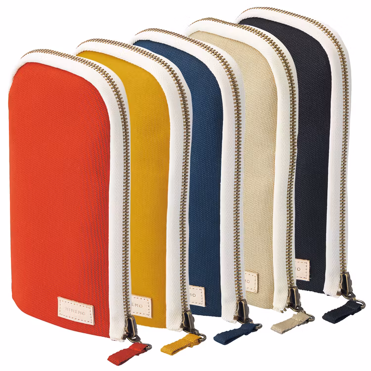 LIHIT LAB:s Hinemo Stand Pen Pouch kan, som namnet antyder, även användas som ett stående pennställ. Öppna bara fodralet och ställ det på bordet. Du kan också vända fodralet ut och in genom att öppna och vika båda delarna helt bakåt, och sedan dra tillbaka dragkedjan. Även i det här läget fungerar det stående. Se film för förtydligande: