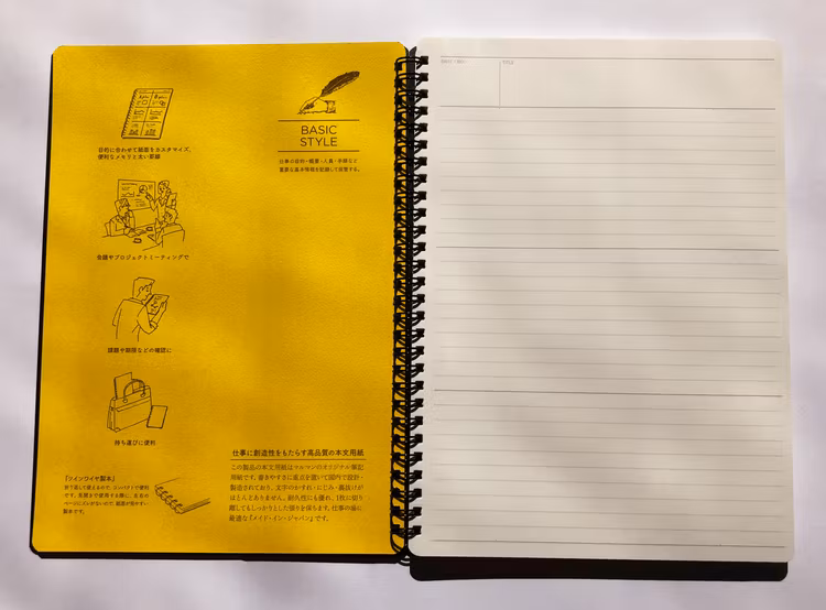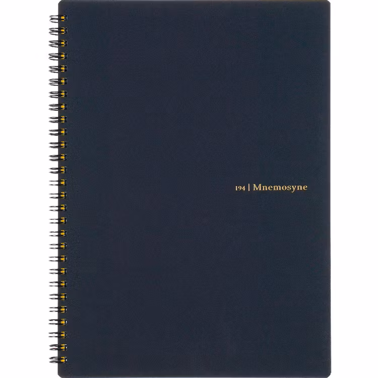 Mnemosyne är en serie anteckningsböcker från japanska Maruman. Maruman är kända för sin oerhörda papperskvalitet, och Mnemosyne är inget undantag. Mnemosyne finns i en rad olika storlekar. Den här utgåvan är linjerad med 7 mm mellan linjerna, och var tioende linje är något mer markerad. Varje sida är mikroperforerad, vilket gör de enkla att dra ut. Varje sida har ett blankt utrymme i toppen, med utrymme för datum och titel.