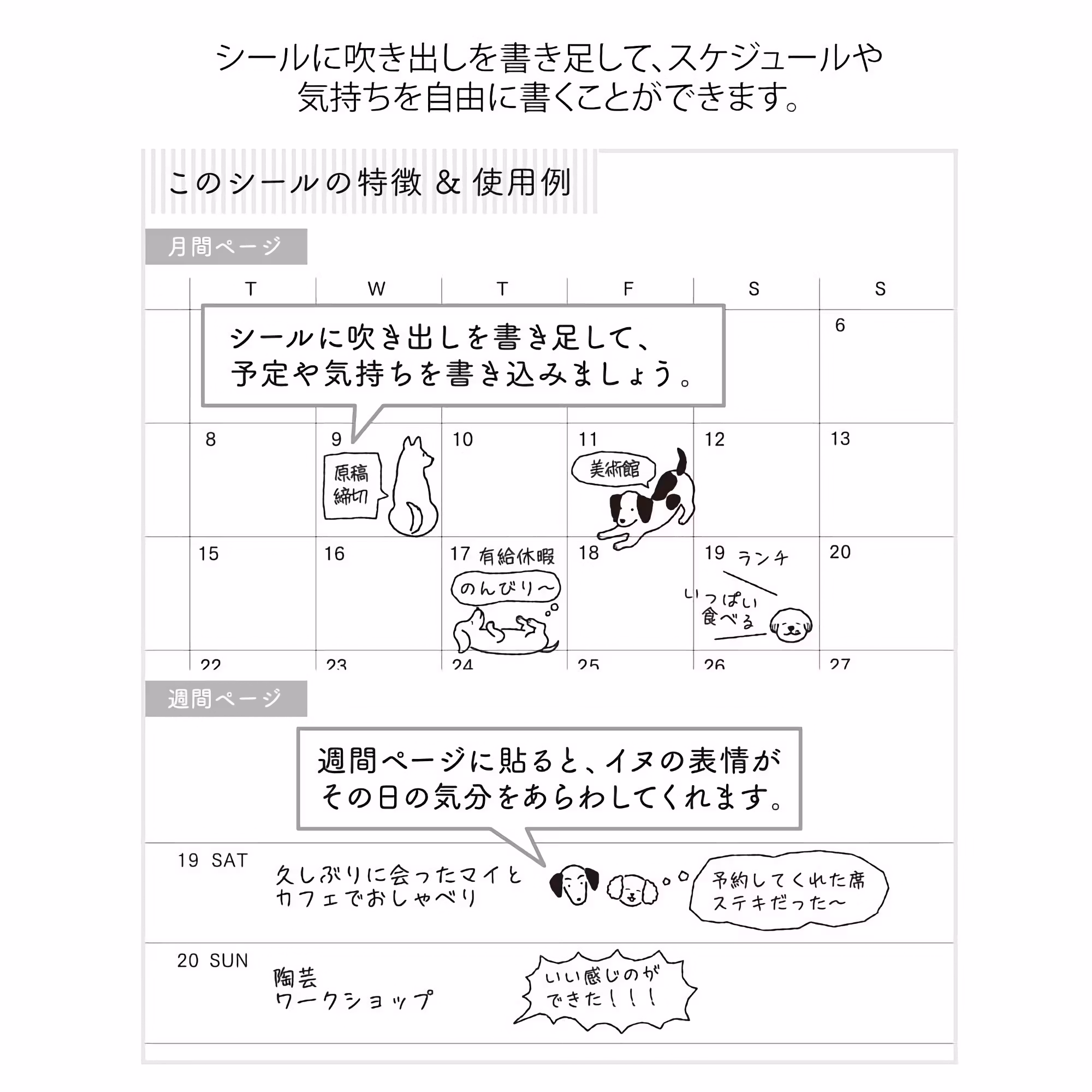 Midori 2023 Diary Sticker Chat Dogs