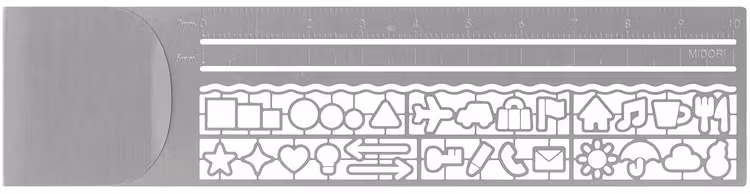 Midoris linjal är ett perfekt tillbehör till din kalender. Varför? Jo, förutom att linjalen i sig är bra för att strukturera upp din planering, hjälper stencilerna dig att planera in saker på ett lite festligare sätt. Klippet gör dessutom att du kan använda linjalen som bokmärke. Mäter upp till tio centimeter.