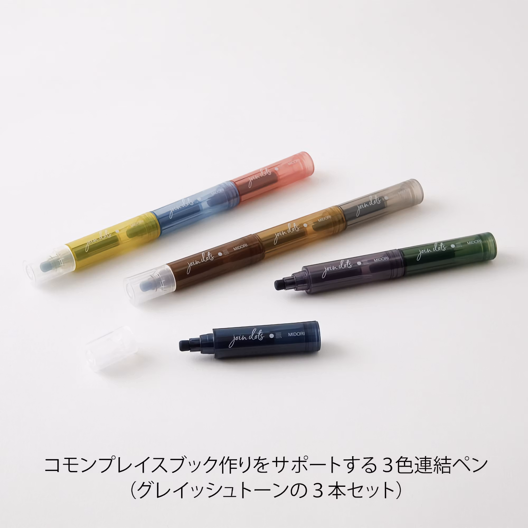 Midori Connecting Pen Join Dots 3-Pack Grayish Tone