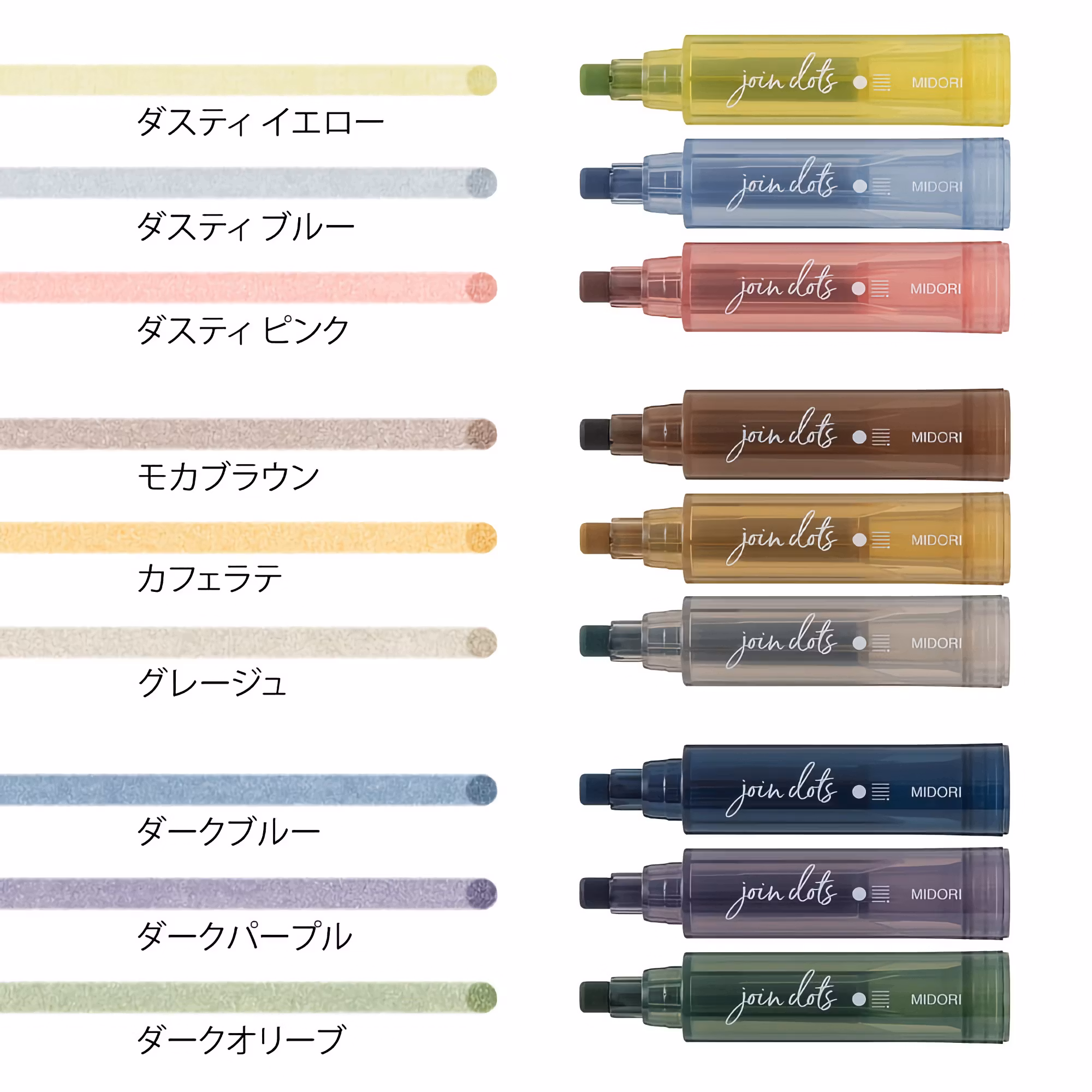 Med Midoris Join Dots Pen byter du enkelt färg på din markeringspenna. Sätt bara färgen du vill använda längst ut, och använd övriga färger som pennkropp. Pennspetsarna är härligt runda, och perfekta för att göra färggranna punktmarkeringar.