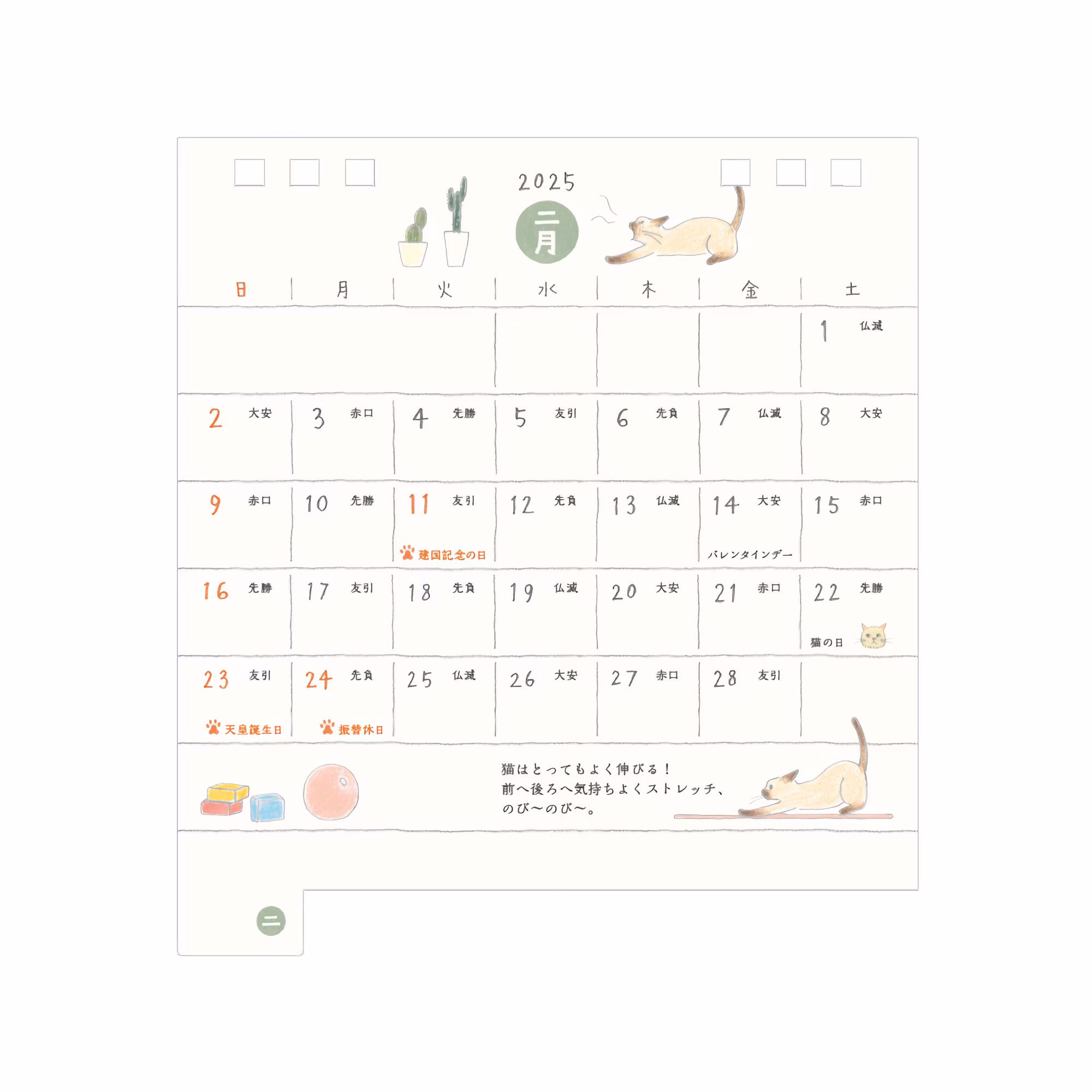 Den här kalendern från Midori består av 12 blad med härliga kattillustationer! Kalendern sträcker sig från januari till december 2025. Kalendern passar perfekt på skrivbordet!