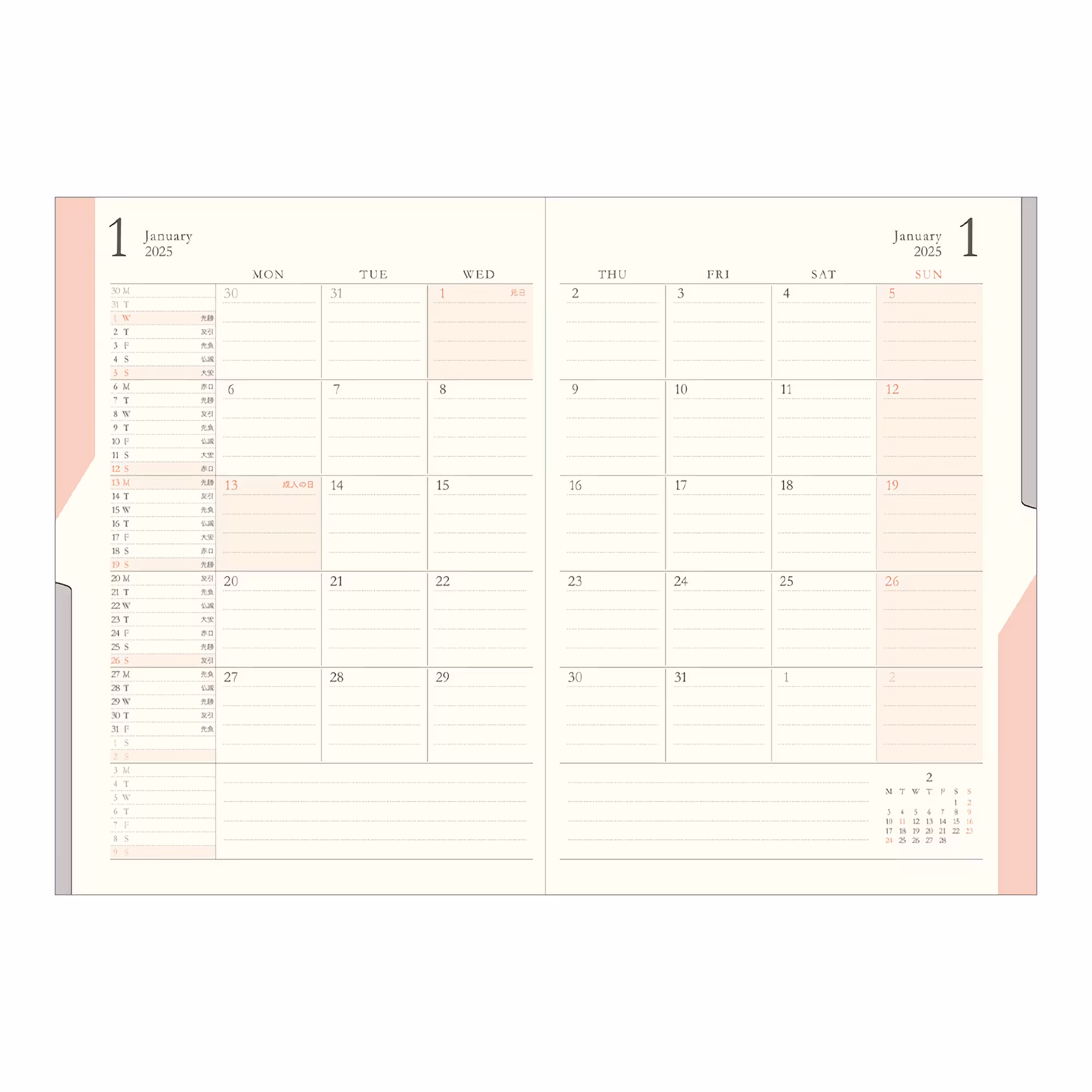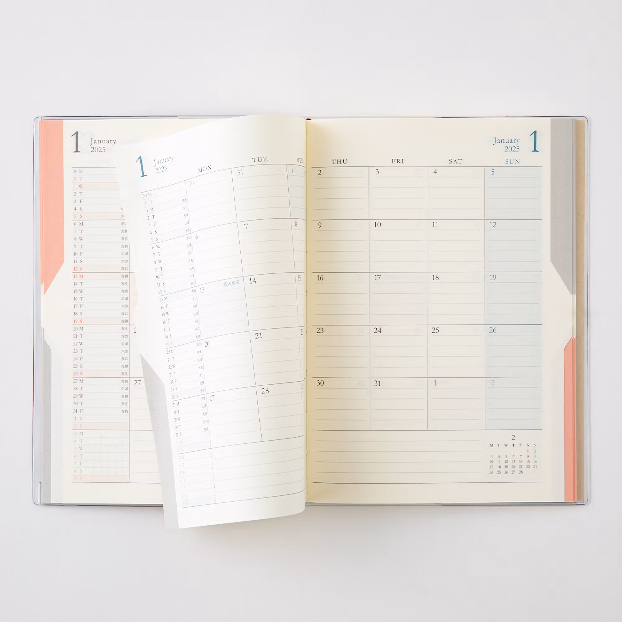 Den kompakta B6-storleen gör kalendern lätt att bära, och omslaget har en enkel beige färg som man aldrig tröttnar på. Boken innehåller Midoris ikoniska MD-papper.