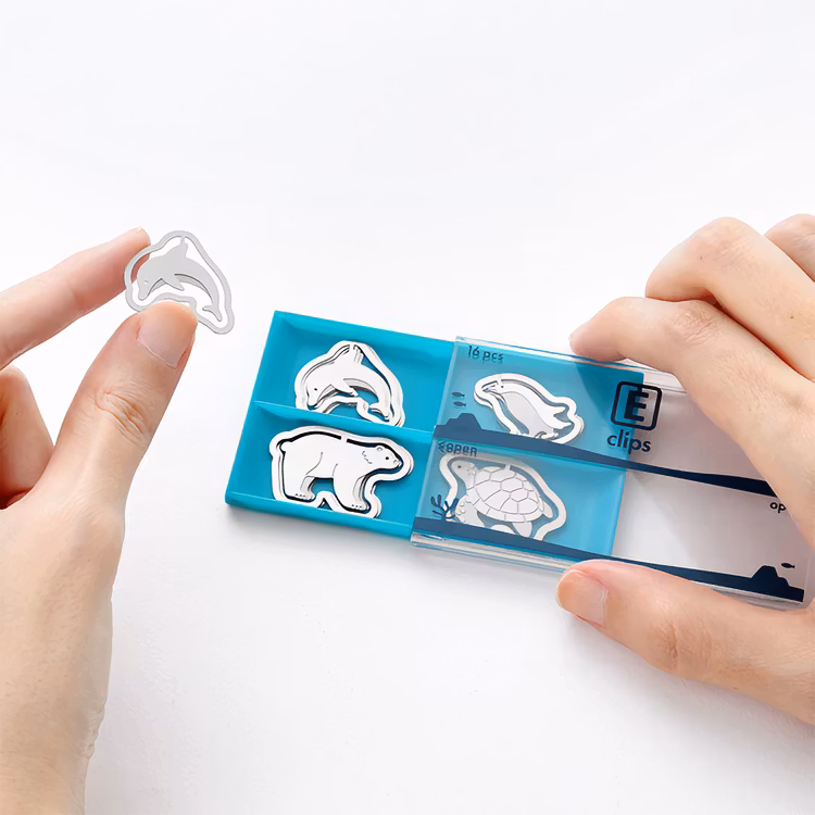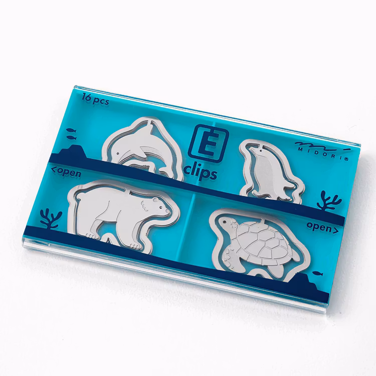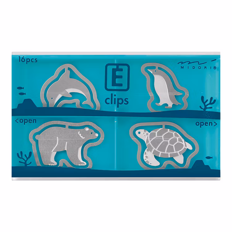De här djurklippsen är i sann Midori-anda både bedårande och funktionella. Eftersom klippsen är mycket tunna kan de användas både som bokmärke, och för att hålla ihop ungefär 10 papper. Finns i flera olika utföranden.