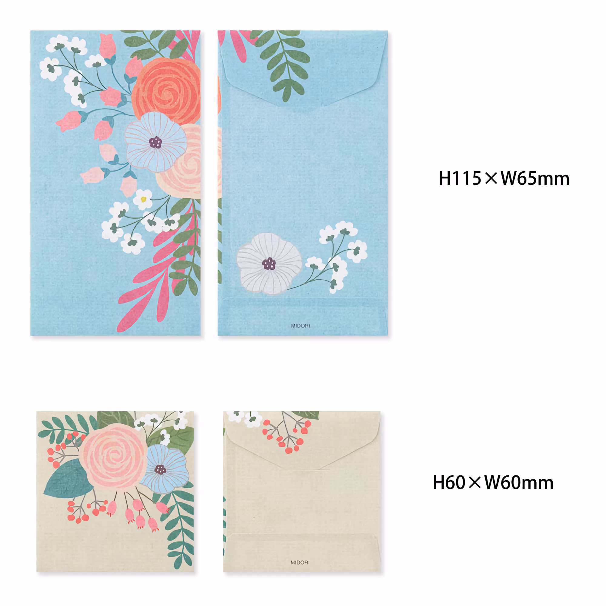 Att få ett brev är något alldeles speciellt, särskilt när det kommer paketerat i kuvert från Midori. De här kuverten kommer i olika storlekar och är illustrerade med härliga blommor.