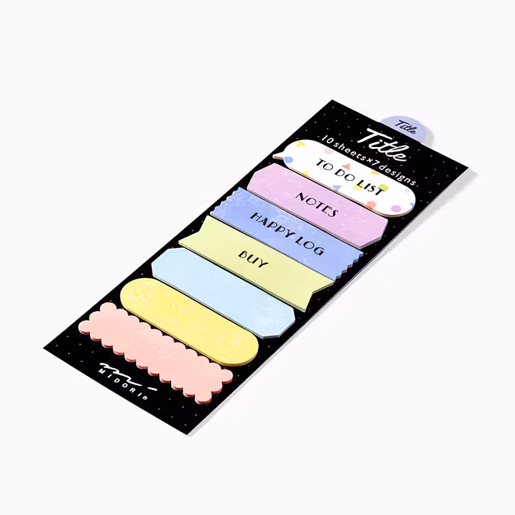 Midori är bra finurliga, och det märks särskilt när det kommer till deras smarta klistermärken. Med Midori Journal Sticky Note Journal Title får du lätt festliga rubriker i din planering.